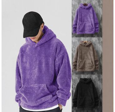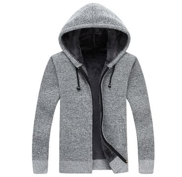 Solid Color With Fur Thickening Cardigan Cotton Knitwear Youth Coat Hooded