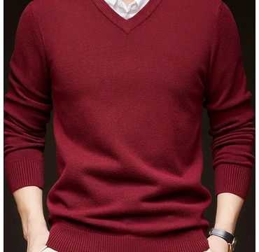 Woolen Sweater Men's Casual Thin V-neck Sweater