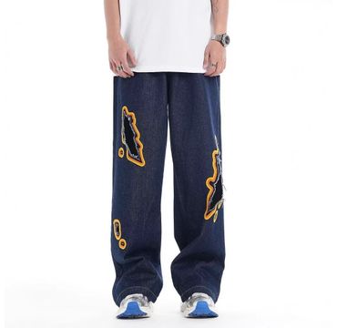 Retro Washed Ripped Embroidery Niche Design Loose Trousers