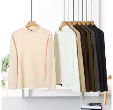Men's Solid Color Threaded Velvet Half High Neck T-shirt