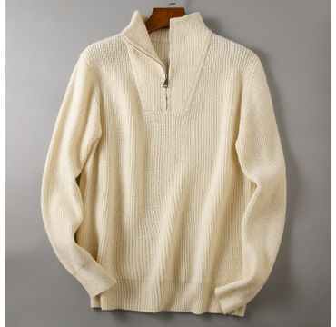 Soft Knit Fabric Men's Half-zip Sweater Solid Color Youth Knitwear