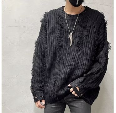 Niche Retro Tassel Ripped Design Loose Lazy Knit Sweater