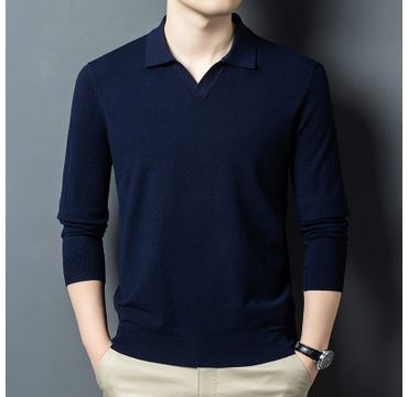 Autumn And Spring Seagull Collar 6 Wool Men's Anti-Pilling Knitted Long Sleeve Polo Shirt