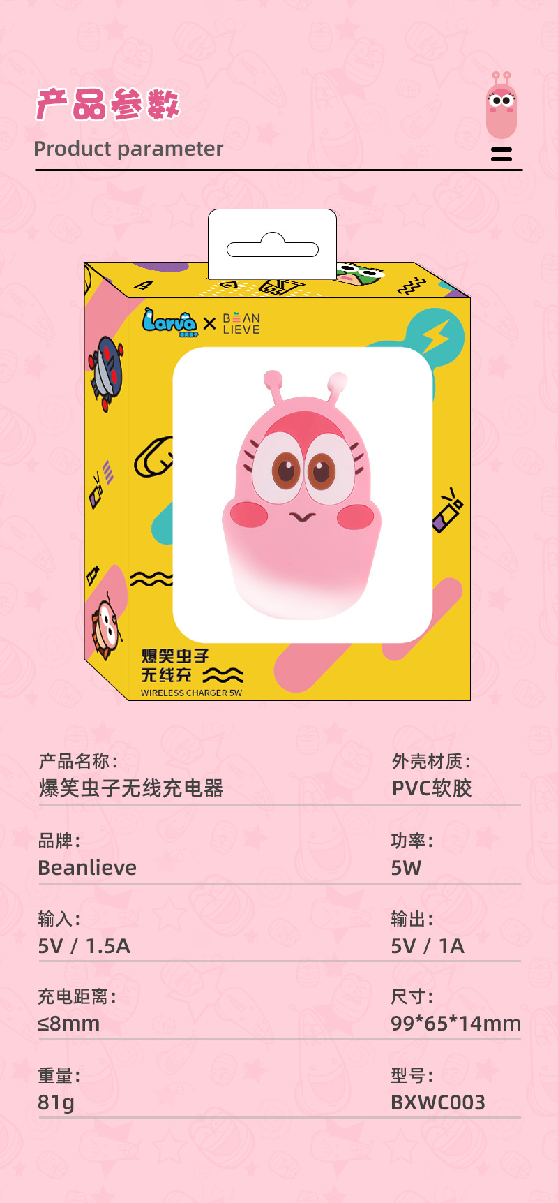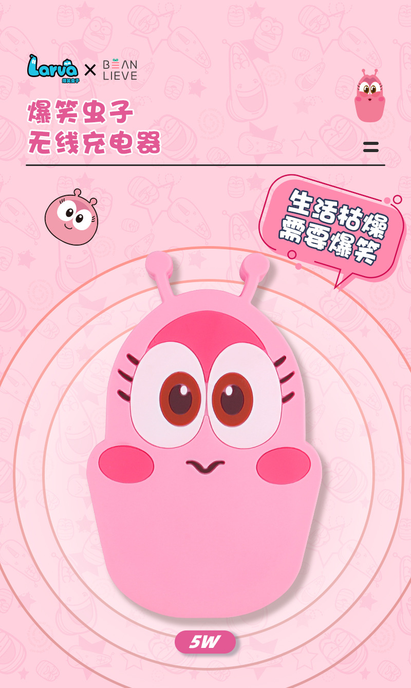 2022 New Cute Q Meng Girl Wireless Charging Gift Co-branded Hilarious Bug Little Pink Mobile Phone Wireless Charger
