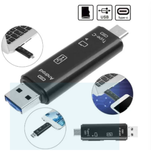 USB2.0 male head +Micro male head +Type-C head, high speed read TF memory card.