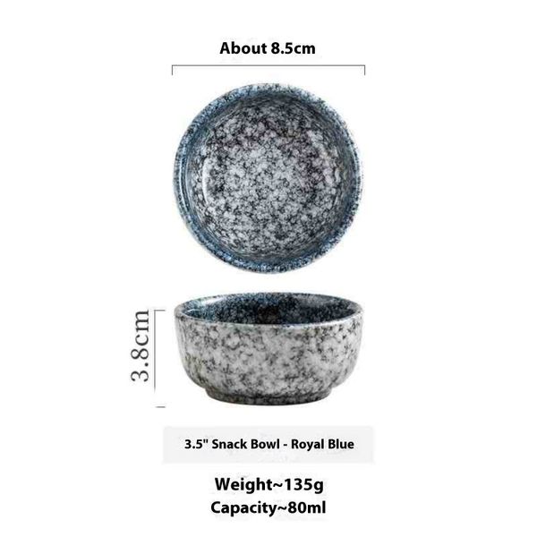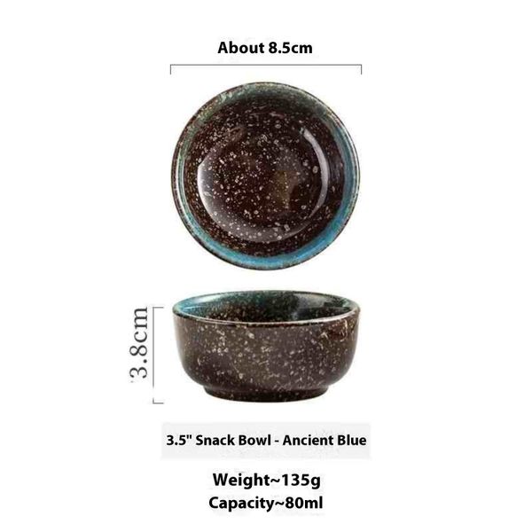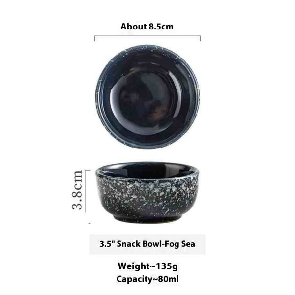 Product information:Shape: roundMaterial: porcelainTea tableware technology: colored glazeColor classification: 3.5-inch snack bowl [twelfth lunar month], 3.5-inch snack bowl [sesame], 3.5-inch snack bowl [black treasure], 3.5-inch snack bowl [foggy sea], 3.5-inch snack bowl [simple blue], and 3.5-inch snack bowl [sapphire blue]Size Information:Size: 3.5 inchesPacking list:Bowl *1