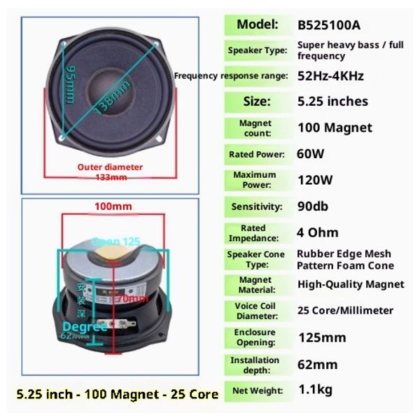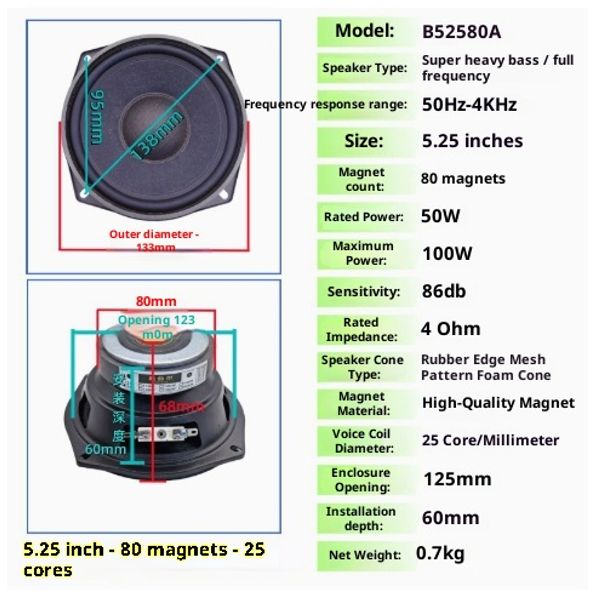Type: 5.25 inch 80 magnet 50W, 5.25 inch 100 magnet 60W