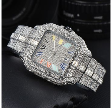 Men's Diamond Weird Digital Square Dial Multifunctional Waterproof Watch