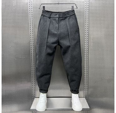 Product information: Thickness: ordinary Fabric name: Polyester Color: dark blue, gray, light brown Elastic: medium elastic Pants length: trousers Pants type: loose type Applicable season: Autumn Style: casual style