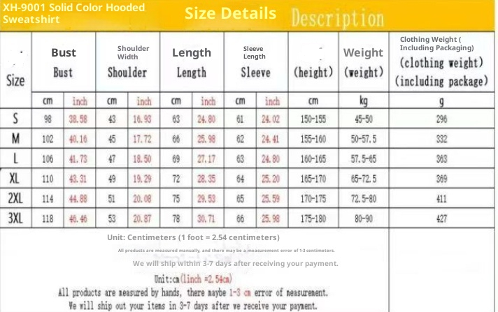 Packing list: Hoodie*1pcs