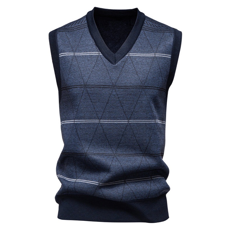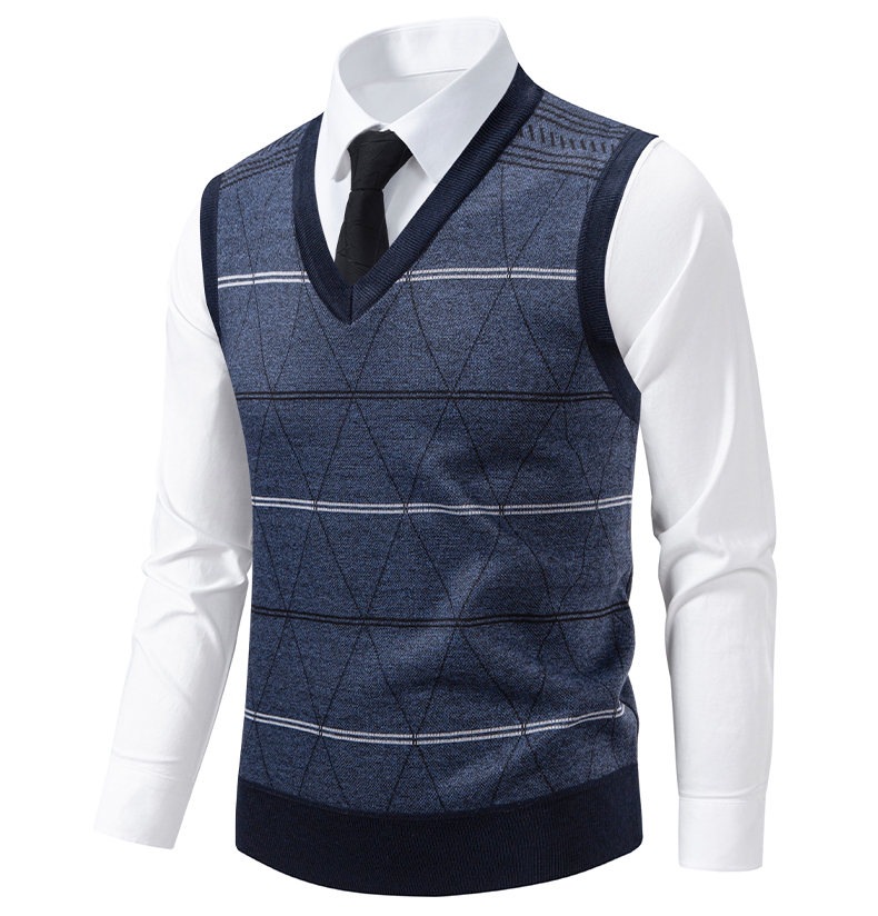 Autumn And Winter Fleece-lined Casual Dad's Diamond Vest Pullover