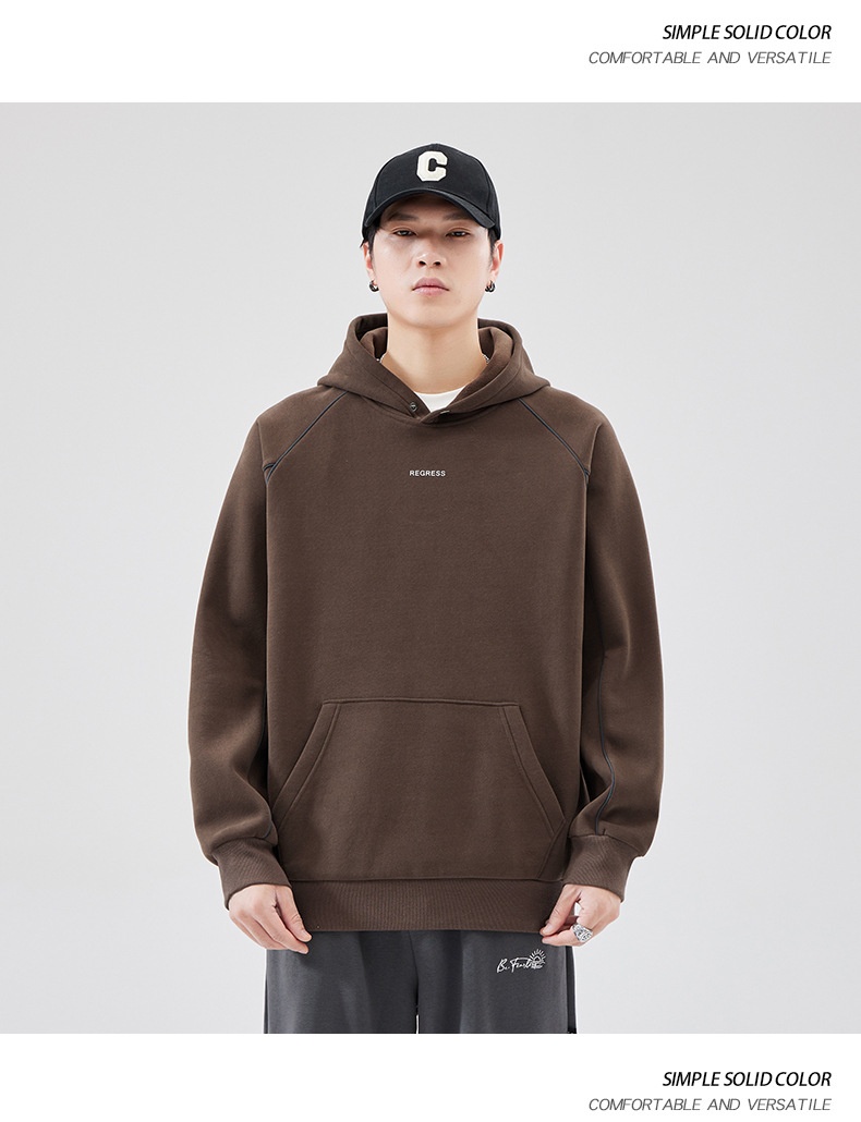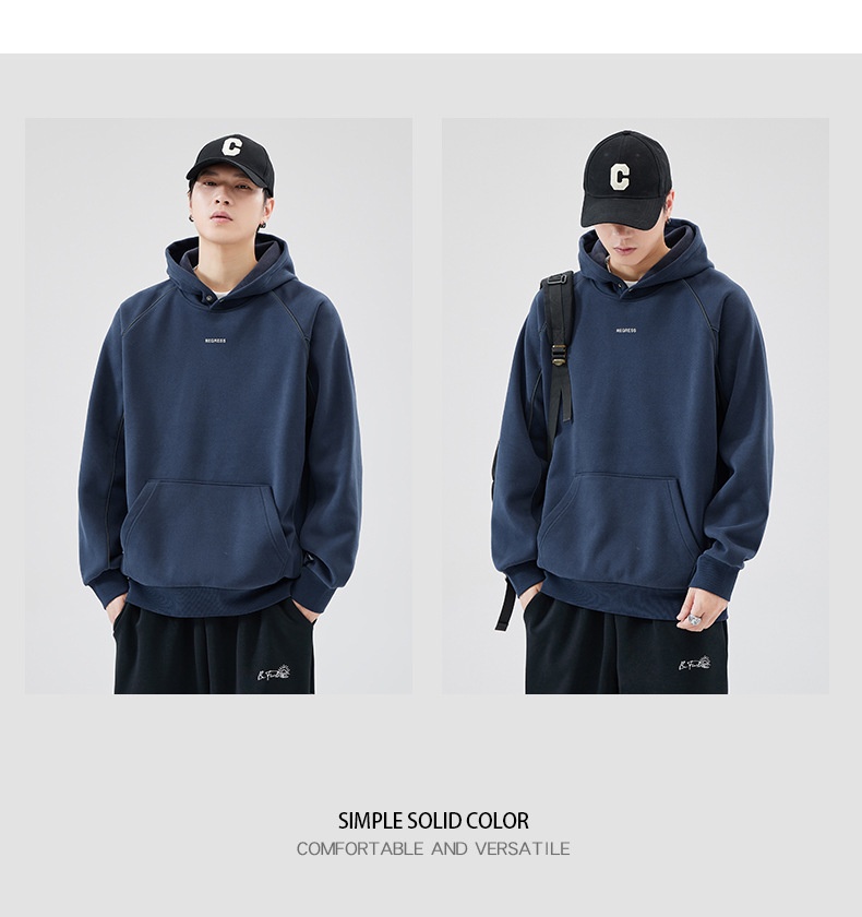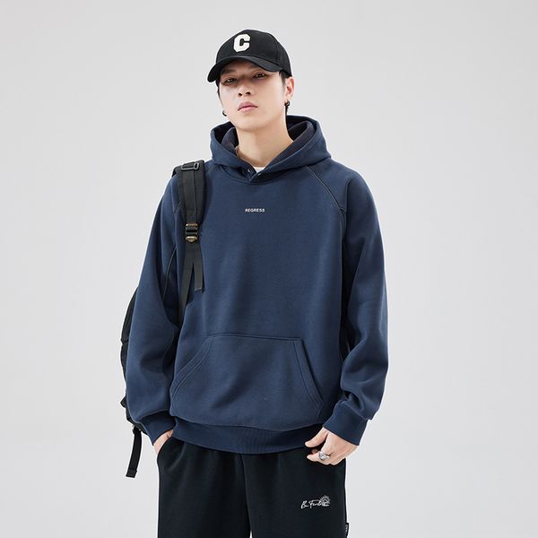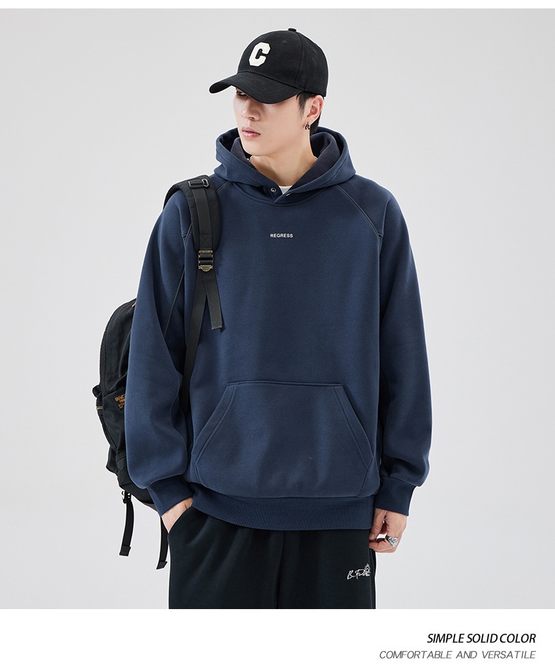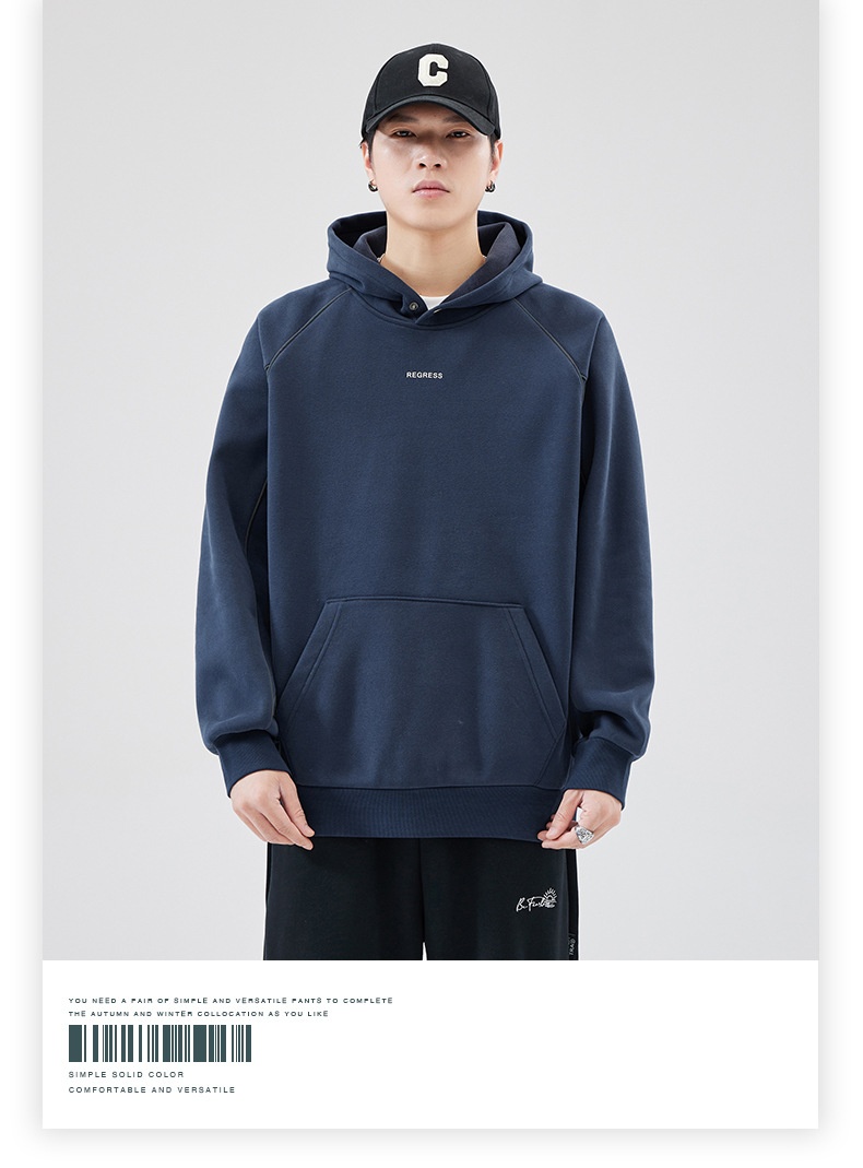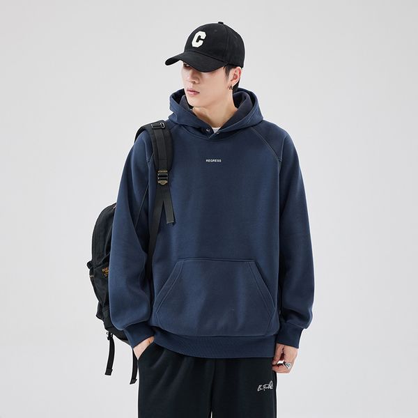 Product information: Pattern: Letters Pocket Style: Dimensional patch pocket Color: deep blue with velvet, coffee color plus velvet, dark blue conventional No liner: no liner Suitable for people: Youth Size: M L XL 2XL 3XL 4XL Style: pullover Thickness: Fleece Lined Fabric name: cotton blend Applicable scenarios: Leisure Sleeve type: Conventional Main fabric composition: Cotton Applicable Gender: Male Inventory Type: whole transaction Applicable age group: Adult Hooded or not: Hooded Sleeve length: long sleeve Suitable season: Winter Style: American Retro Error range: 1-3 Craft: digital printing