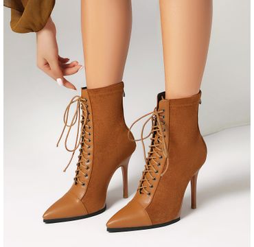 New Drawstring Patchwork European And American Women's Boots Short Pointed Knight Boots