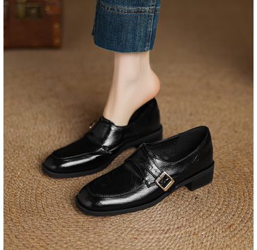 Low Heel Plus Size Buckle Litchi Pattern Shoes