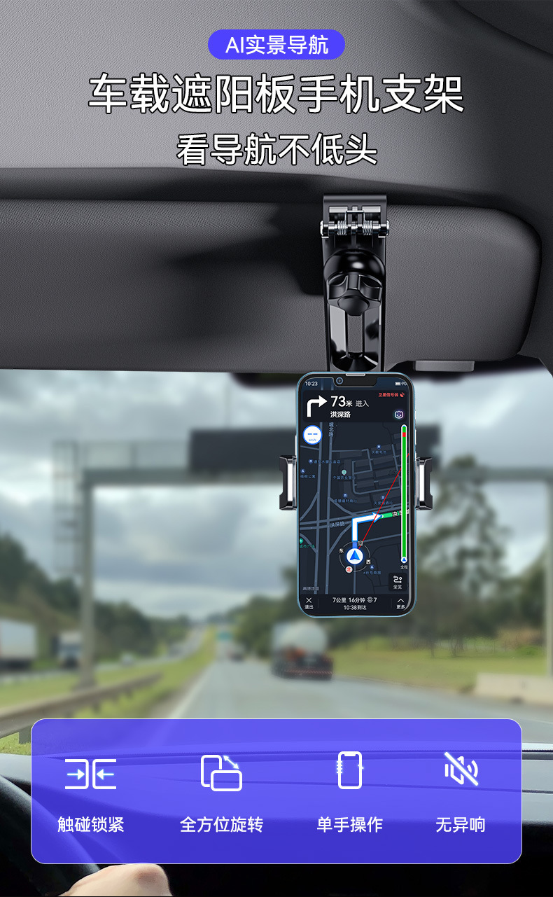Car mobile phone navigation bracket sun visor clip snap-on drive recorder holder multi-function mobile phone support frame
