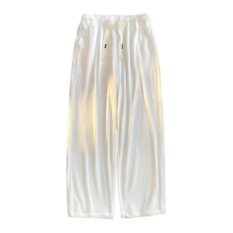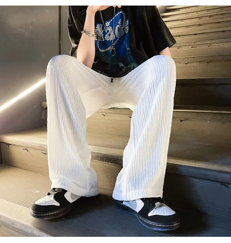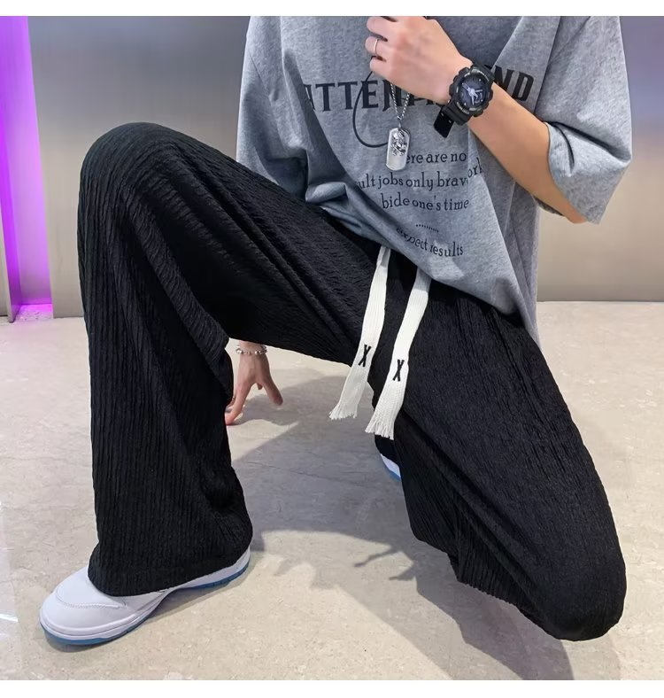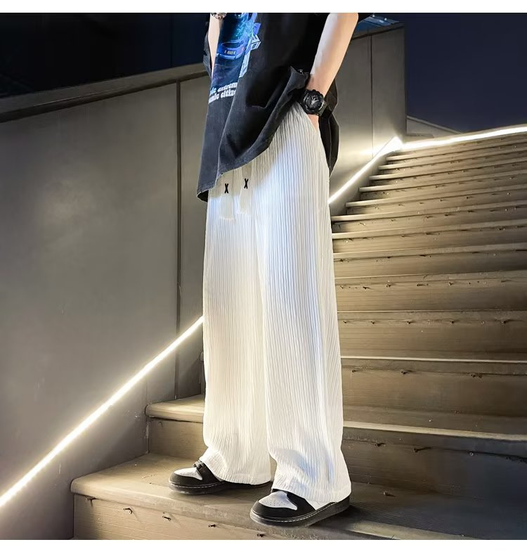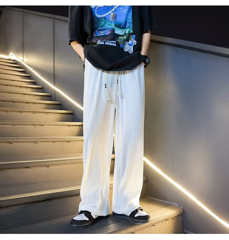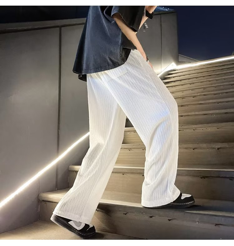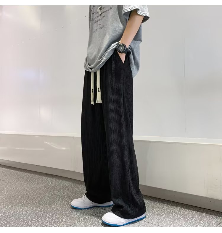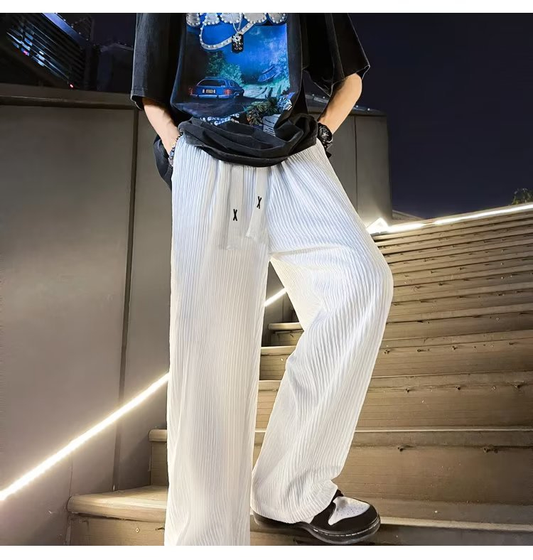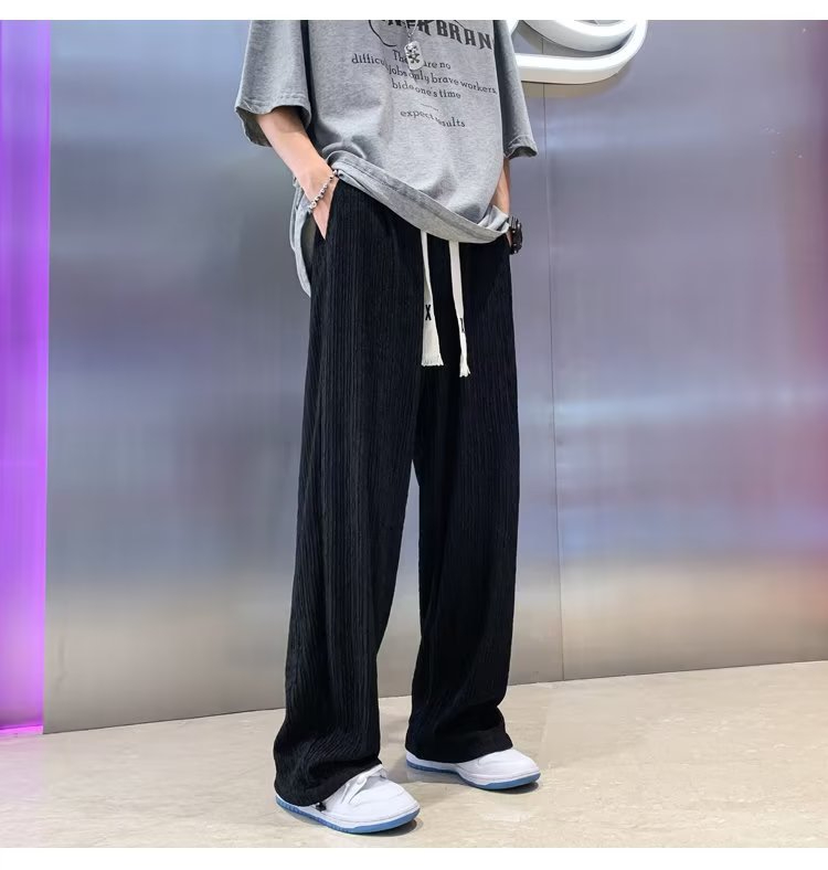 Product information: Color: black, white Elasticity: no elasticity Pants length: trousers Waist Type: Mid waist Suitable for people: Youth Size: M,L,XL,2XL,3XL Style: long straight pants Fabric name: Chemical Fiber blending Applicable scenarios: Leisure Main fabric composition: Polyester Fiber (polyester) Applicable Gender: Male