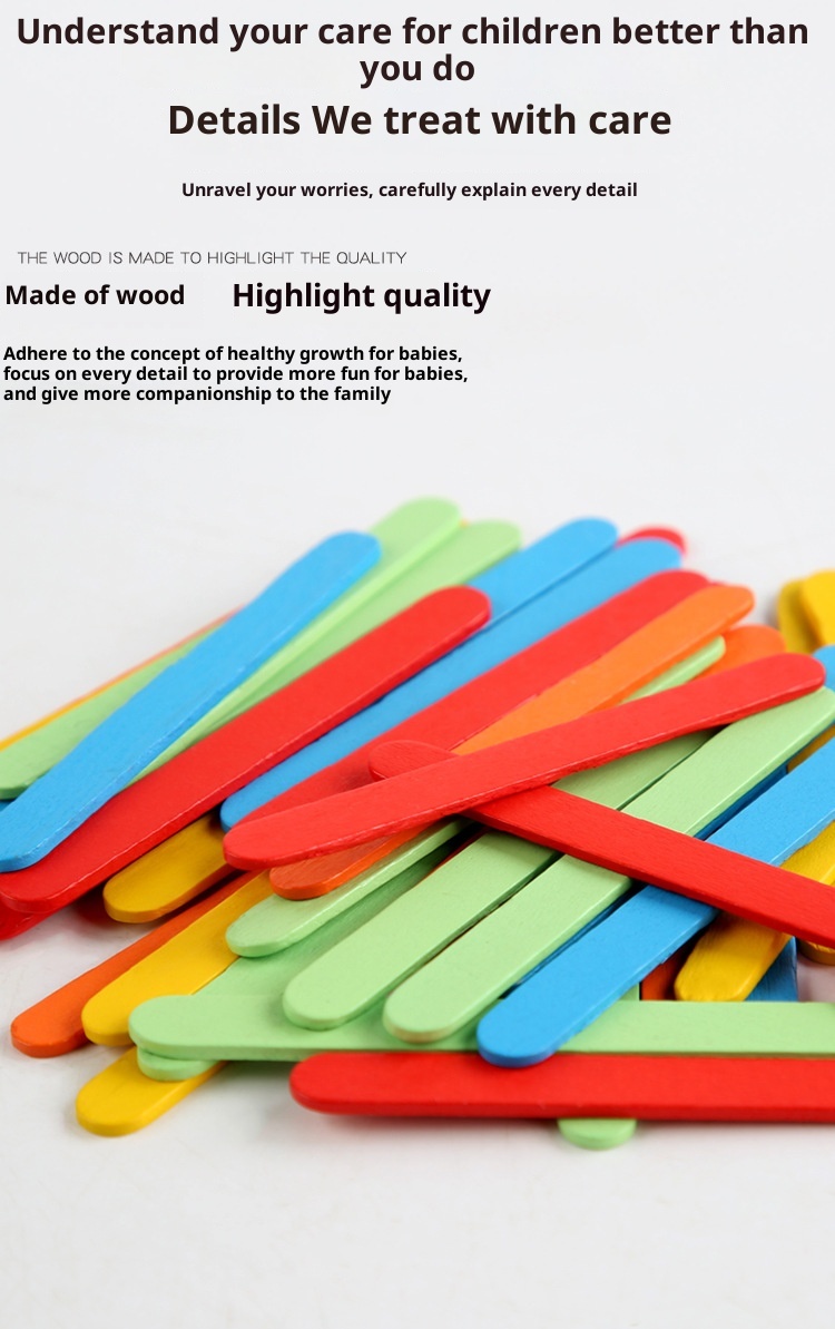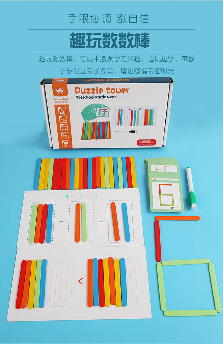 Product information:Color: Building counting sticks Processing method: LOGO private stickerMaterial: Wooden Packaging method: Color box Category: Other educational toys