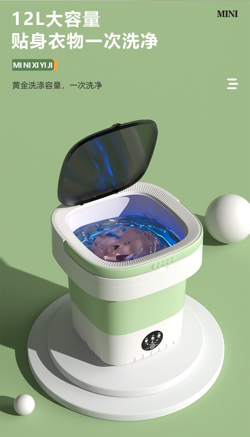 Mini washing machine folding portable household baby clothes socks underwear washing machine dehydrated blue light antibacterial