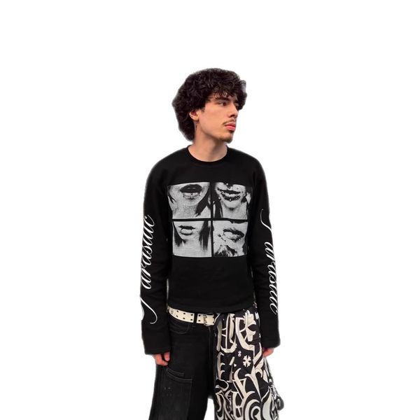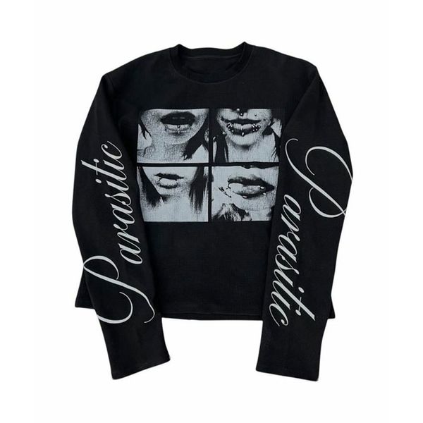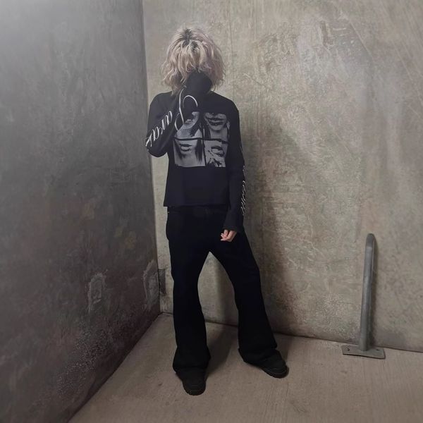 Product information: Fabric name: Polyester Color: Black Sleeve type: regular sleeve Main fabric composition: Polyester (polyester fiber) Size: S,M,L,XL Style type: Street hipster Sleeve length: long sleeve Popular elements: voile Style: pullover Style: Gothic style