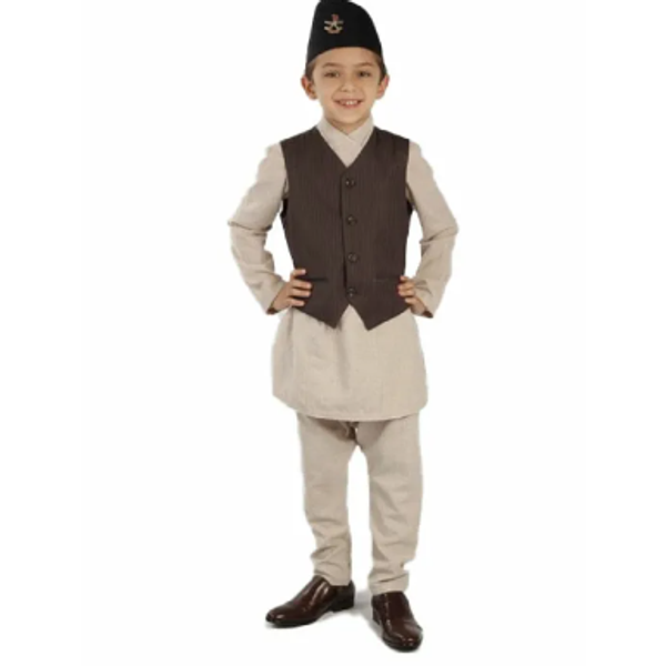 This listing is a full set which contains: Top, Pant, Nepali topi, Matching black coat.
