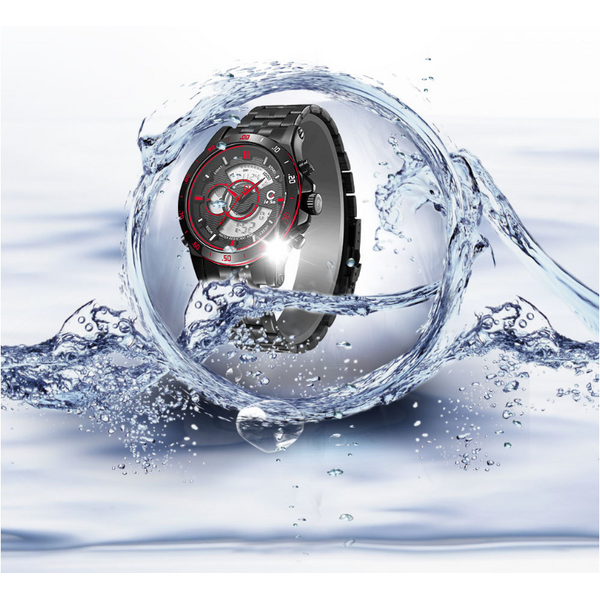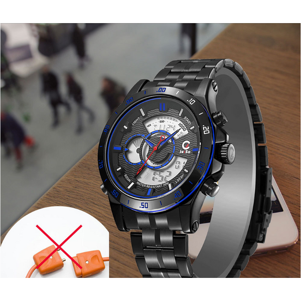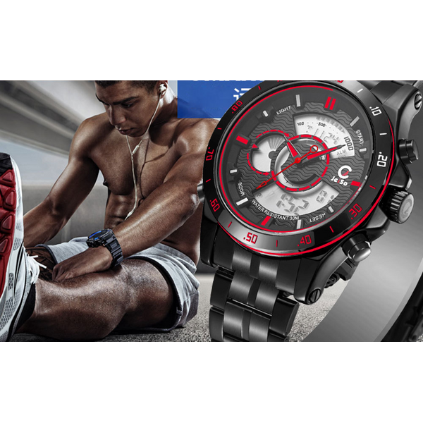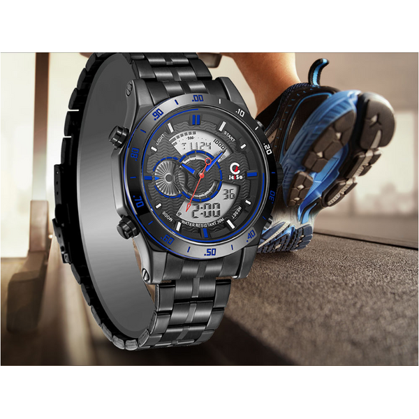 Function: dual time, chronograph stopwatch, day of the week display, date display, timer alarm, luminous, 12 / 24-hour system, speed measurementMaterial: high-quality alloy case, high-quality steel strap, mineral-reinforced glass, stainless steel bottom cover, stainless steel buckleDial diameter: 44mmDial thickness: 16mmStrap length: 220mmStrap width: 22mm