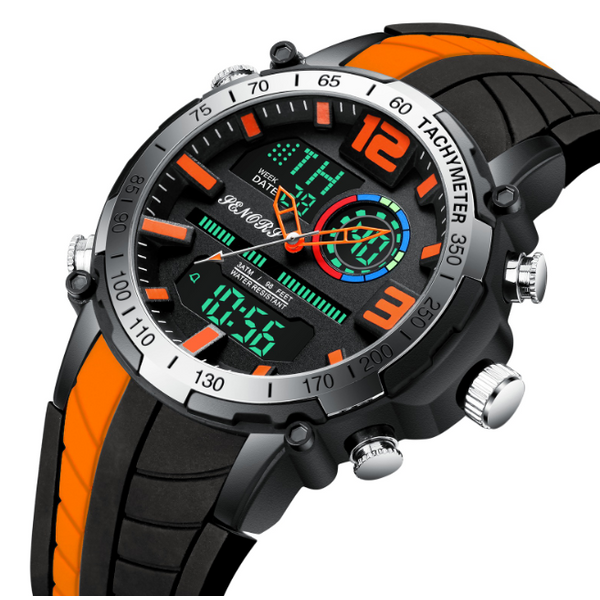Display type: pointer + numberWaterproof performance: 30MMovement type: electronicThickness: 14mmDial diameter: 46.5mmCrown type: PressedTable bottom type: ordinaryMirror material: ordinary glass mirrorBuckle style: pin buckleBuckle material: stainless steelStrap Material: SiliconeDial shape: round