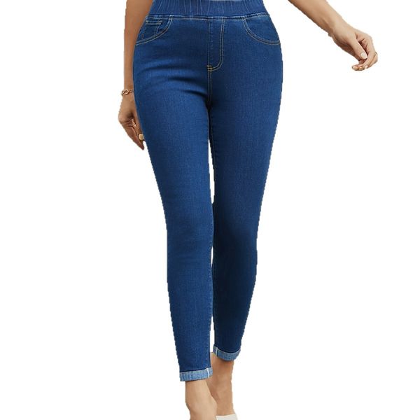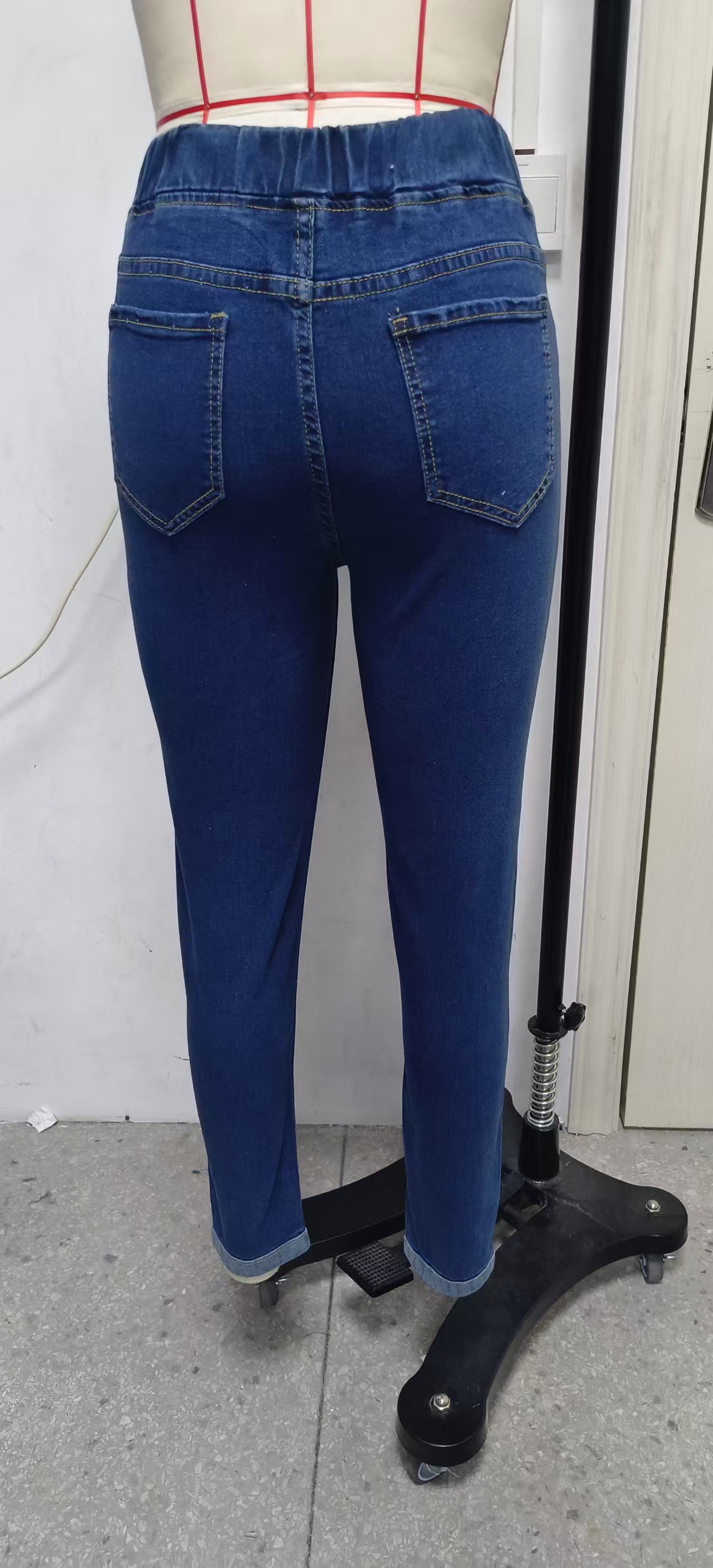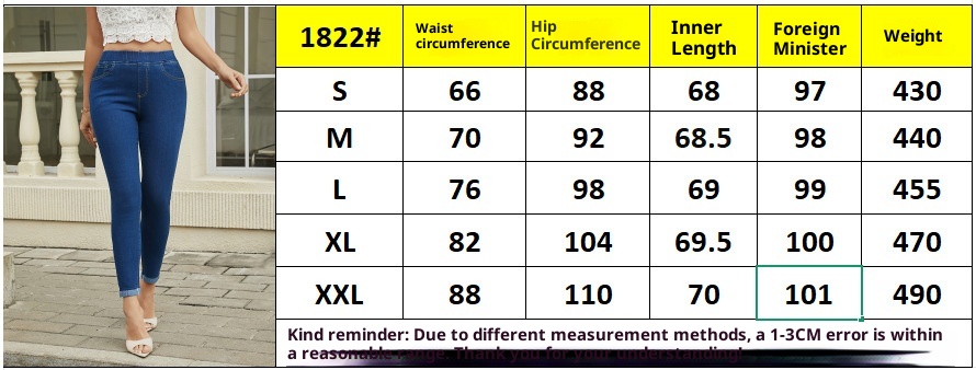 Product information: Fabric name: cotton blend Color: blue Elastic force: medium elastic Main fabric composition: polyester film fiber Pants length: cropped pants Waist Type: Mid waist Size: S,M,L,XL,XXL Style type: Street hipster Pants type: skinny pants Popular elements: solid color Style: Basic Style: European and American style