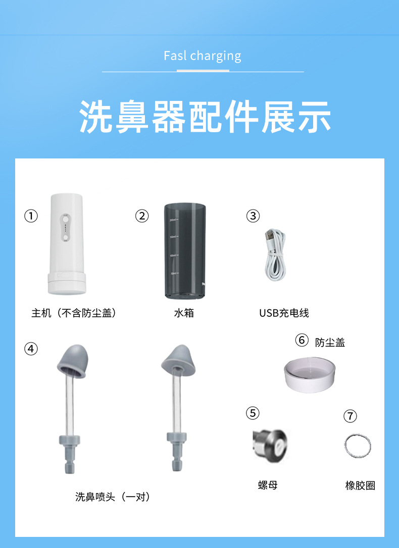Electric nasal irrigation device accessories spray silicone nozzle dust cover charging cable water tank electric nasal irrigation device factory wholesale