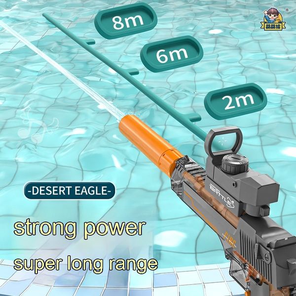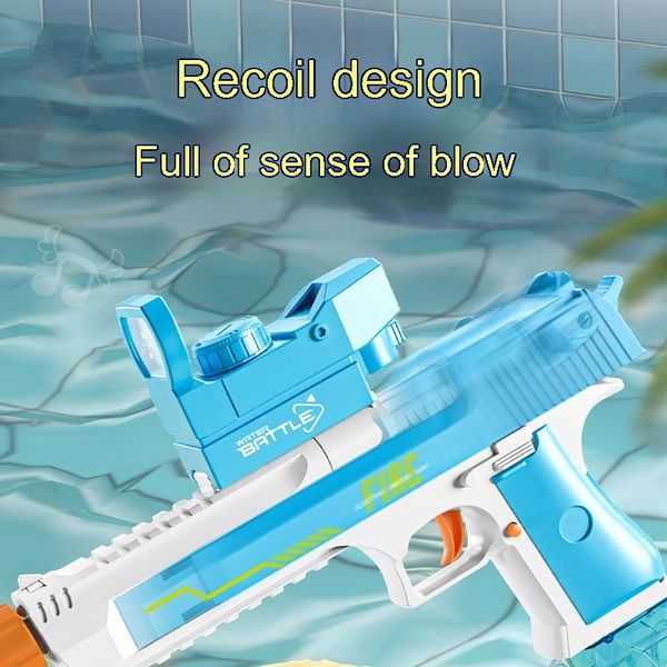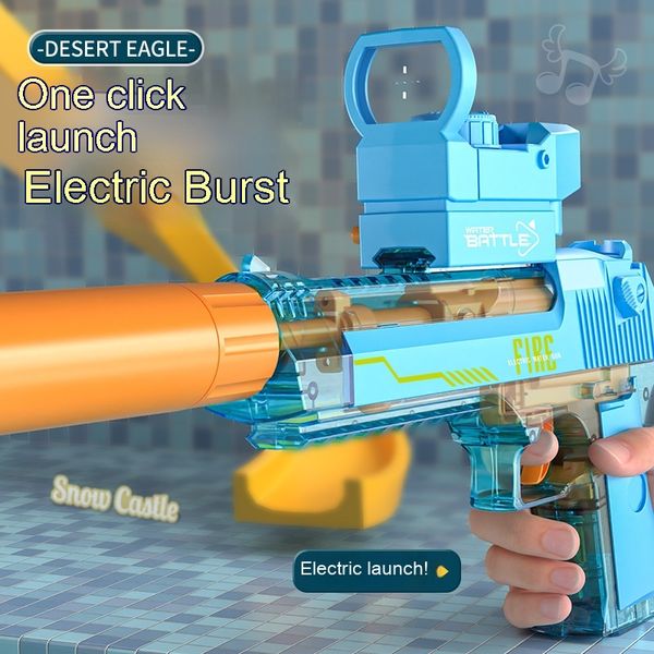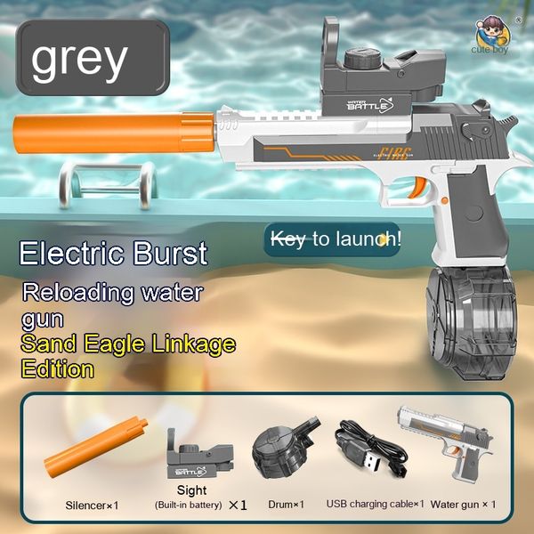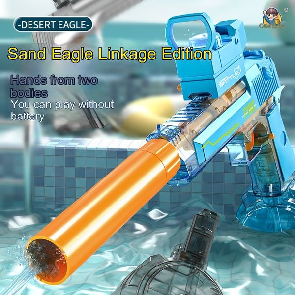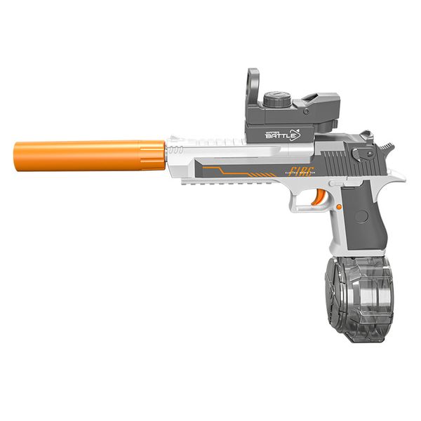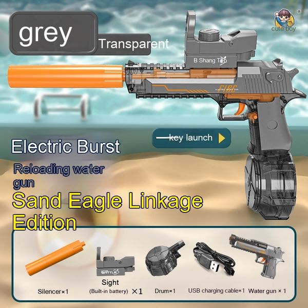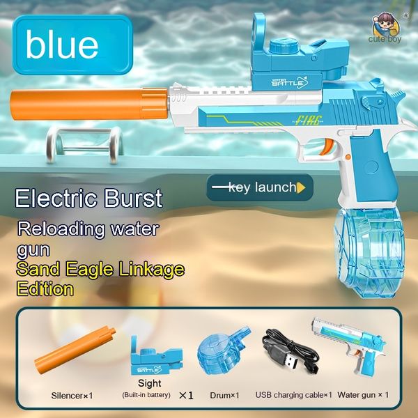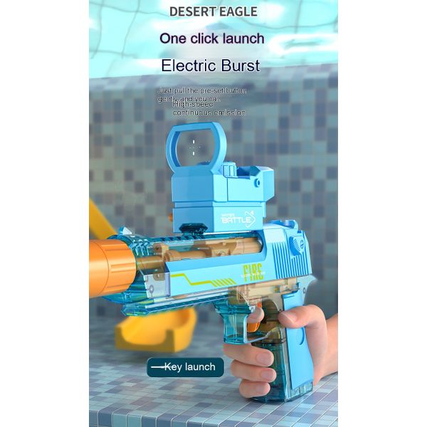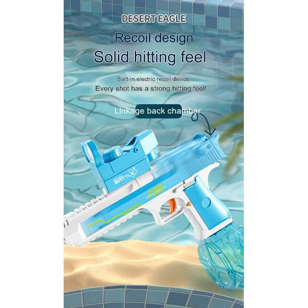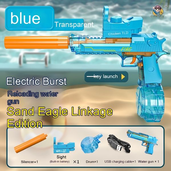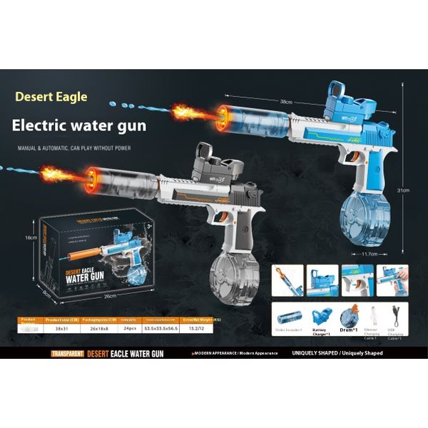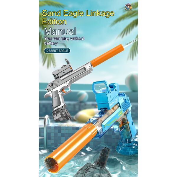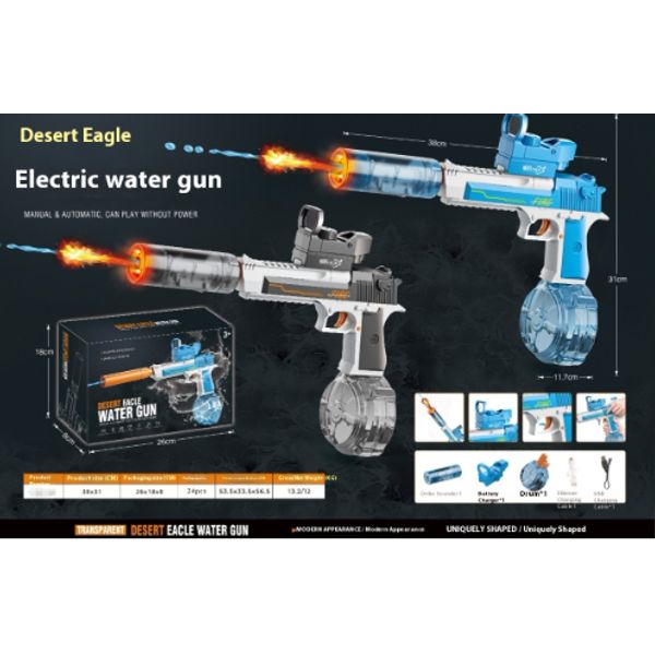 Blue and White: Linked Desert Eagle Electric Water Gun + Transparent Flame/Silencer Black and White: Linked Desert Eagle Electric Water Gun + Transparent Flame/Silencer