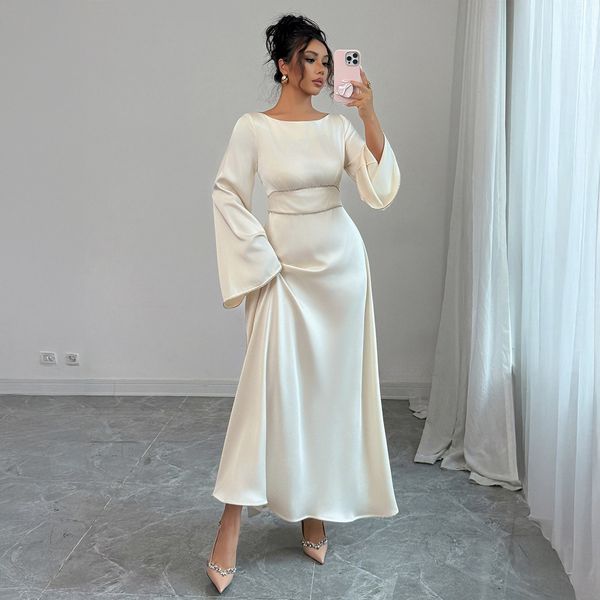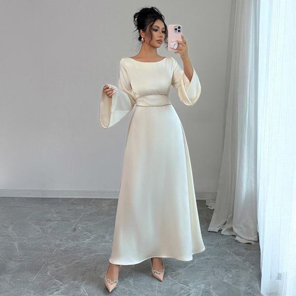 Product information: Pattern: solid color Skirt-type: A- line skirt Color: Apricot Waist type: high waist Size: S,M,L,XL Style type: Street hipster Combination form: Single piece Skirt length: mid-length skirt Popular elements: solid color Style: Basic Fabric name: Polyester Sleeve type: bell sleeve Main fabric composition: Polyester (polyester fiber) Sleeve length: long sleeve Skirt Category: Dress Style: European and American style Process: non-ironing treatment
