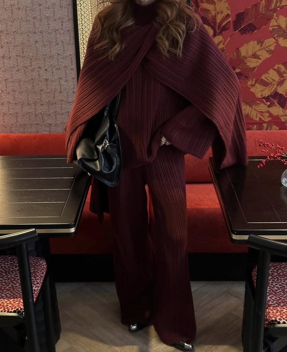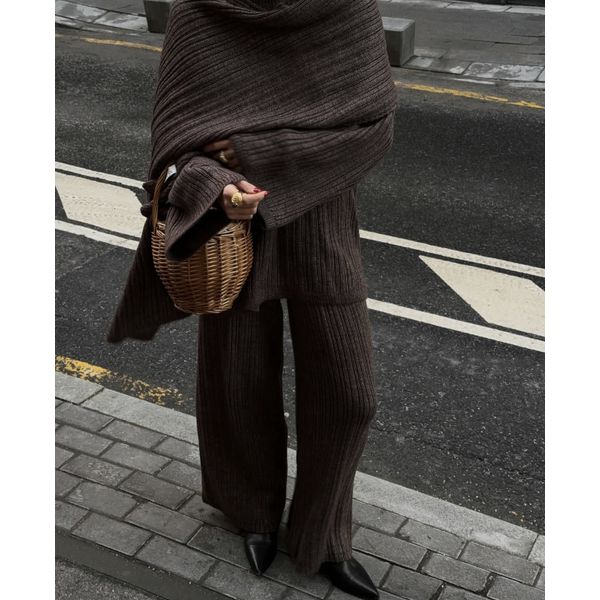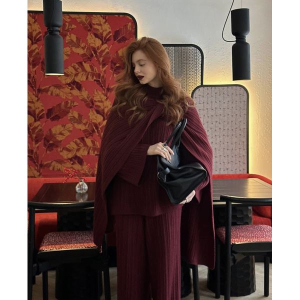 Product information: Pattern: solid color Fabric name: Core-spun yarn Color: beige, gray, Burgundy, Brown Sleeve type: long sleeve Pants length: trousers Main fabric composition: viscose fiber Size: M,L Applicable Gender: Female Style type: temperament commute Sleeve length: long sleeve Popular elements: solid color