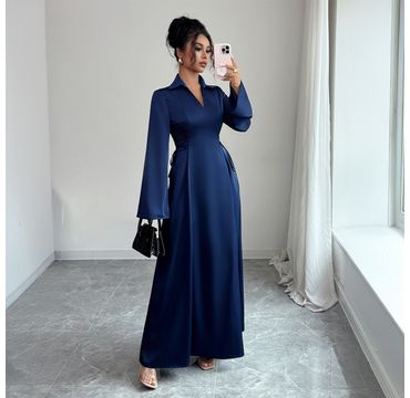 Product Information: Material composition: Polyester Pattern: Solid colour Collar Type: V-neck Combination: One piece Colour(s): Burgundy Black White Grey Skirt length: long