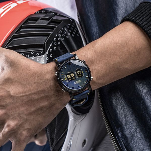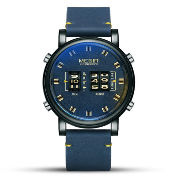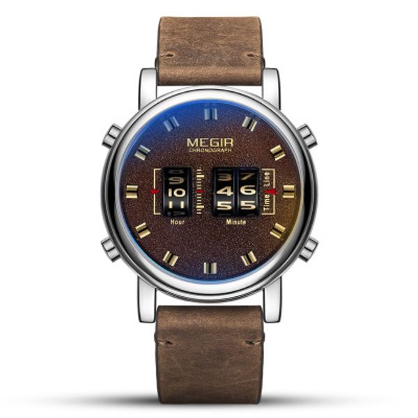 Movement: Quartz Movement Gender: Men Display: Digital Roll Band material: Leather Watch strap length Approx: 22.5cm Watch strap Width approx: 2.2 cm Diameter of the watch case: 5.7 cm approximately Thickness of the watch case: 1.7 cm approximately Watch weight approx .: 82g Package Included: - 1 x MEGIR watches - 1 x user manual with warranty card