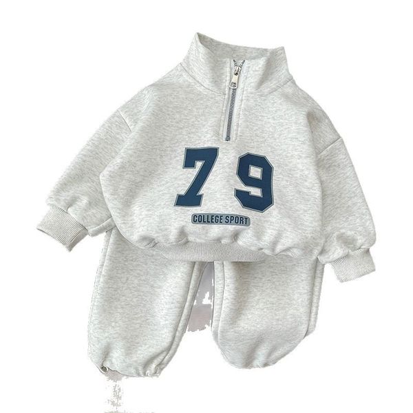 Product information: Mode: Letter Color: 79 long-sleeved suit, light grey Suit type: shirt and trousers Material: Cotton Sleeve length: Long sleeves Style: Korean