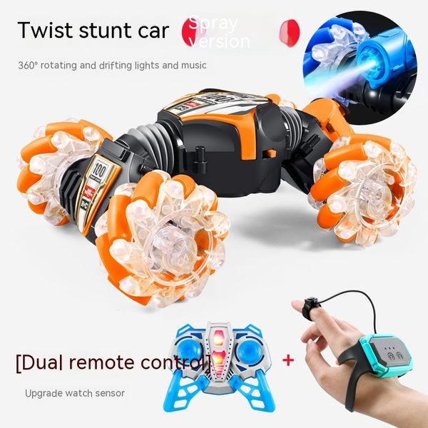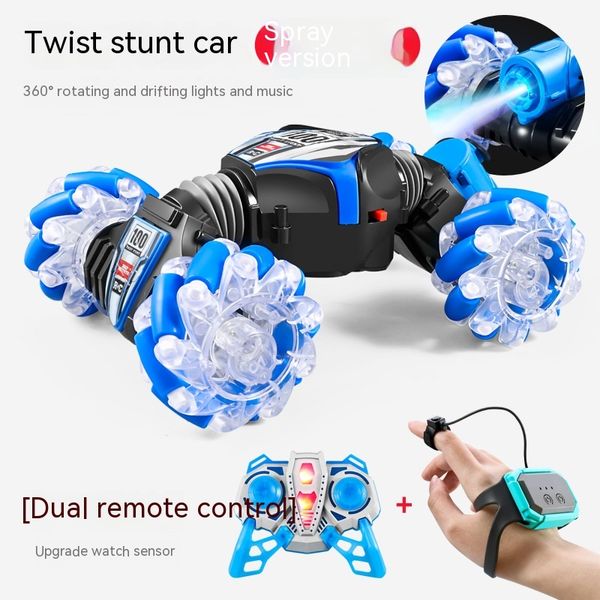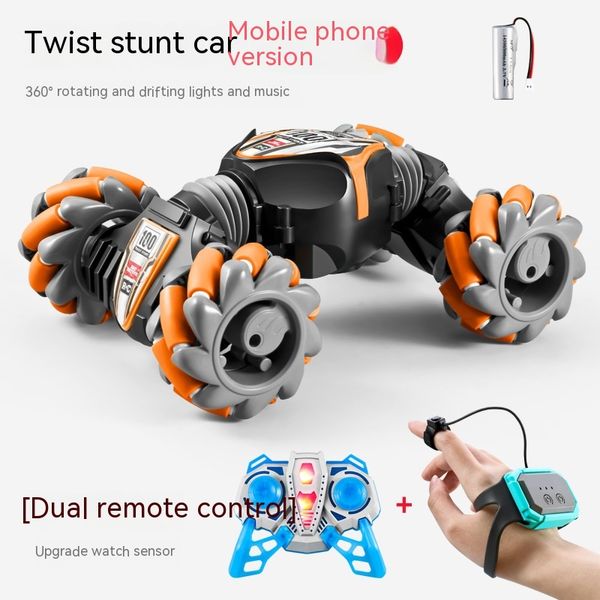 Product information: Color: 100A dual mode Blue (handle watch),100A dual mode Orange (handle watch),100A blue dual battery version (handle watch battery),100A orange dual battery life version (handle Watch battery life),100-1 Blue spray upgrade version (handle watch spray function),100-1 orange spray upgrade version (handle watch spray function),100-1 customizable body LOGO printing white spray upgraded version (handle watch spray function Product Name: hollow wheel twist stunt car Product color: blue, orange Product material: explosion-proof ABS, electronic components Product Size: 19.8*13 * 6.2cm Suitable age: over 14 years old Body tire: Mecanum wheel Lighting Music: cool LED colored lamp/dynamic music Driving Power: four-wheel drive strong power Battery life: about 35-40 minutes Charging time: about 2 hours Body battery: 3.7V high power 800 mA lithium battery Remote control distance: about 100 meters