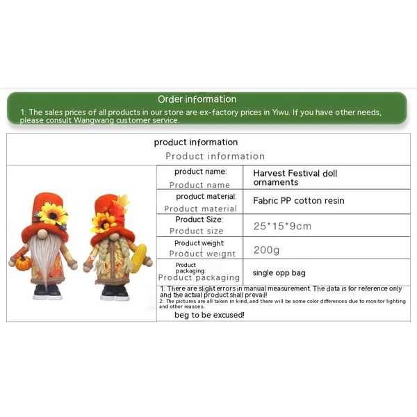 Product information:Color: Men's pumpkin forest decoration, women's corn forest decorationMaterial: cloth Size: 25*15 * 9CM