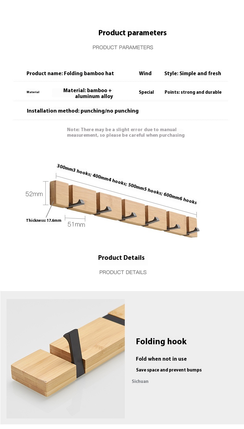 Product information: Treatment Process: spray paint Material: bamboo aluminum alloy Specifications: primary color type 3 hook, primary color type 4 hook, primary color type 5 hook, primary color type 6 Hook, White 3 hook, White 4 hook, White 5 hook, White 6 Hook Style: New Chinese style