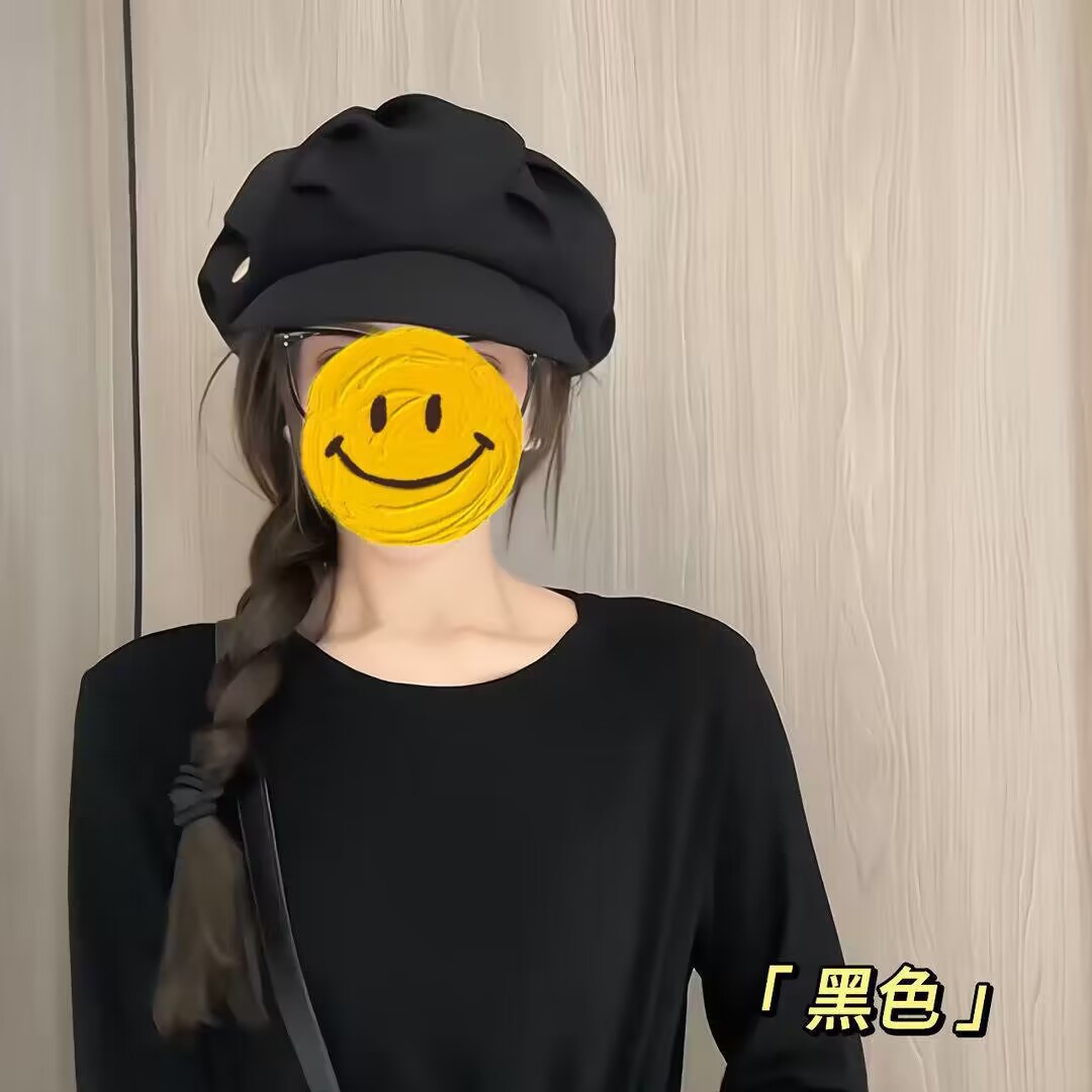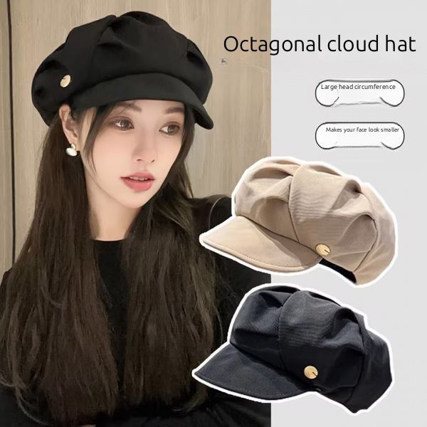 Japanese fashion soft-brimmed berets, net red pleated clouds, octagonal hats, women's spring and autumn faces, small hats, Korean version is simple