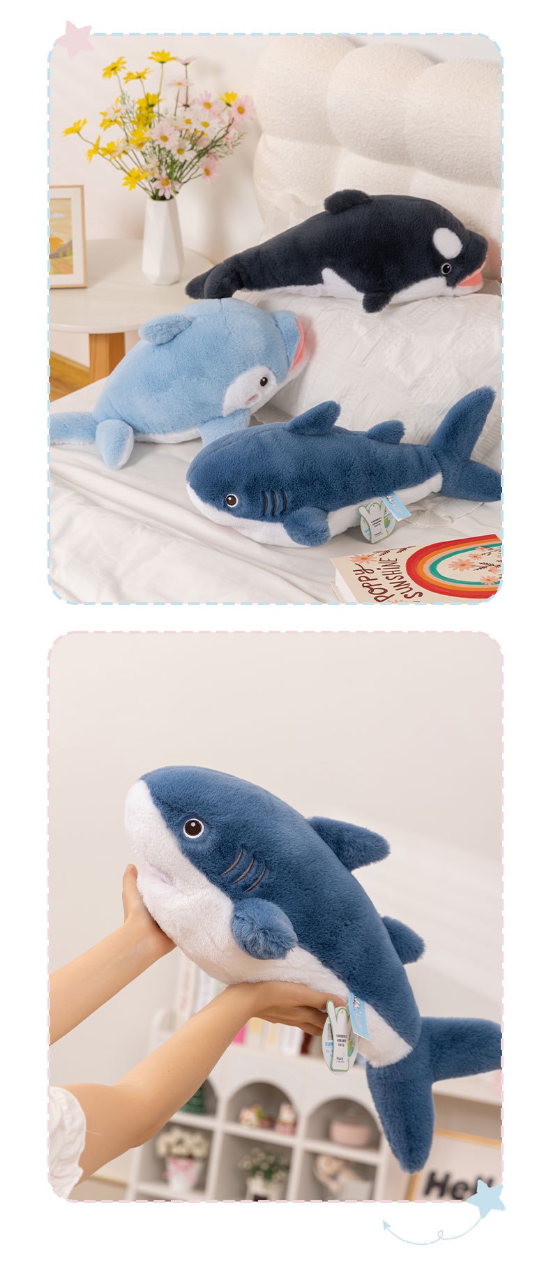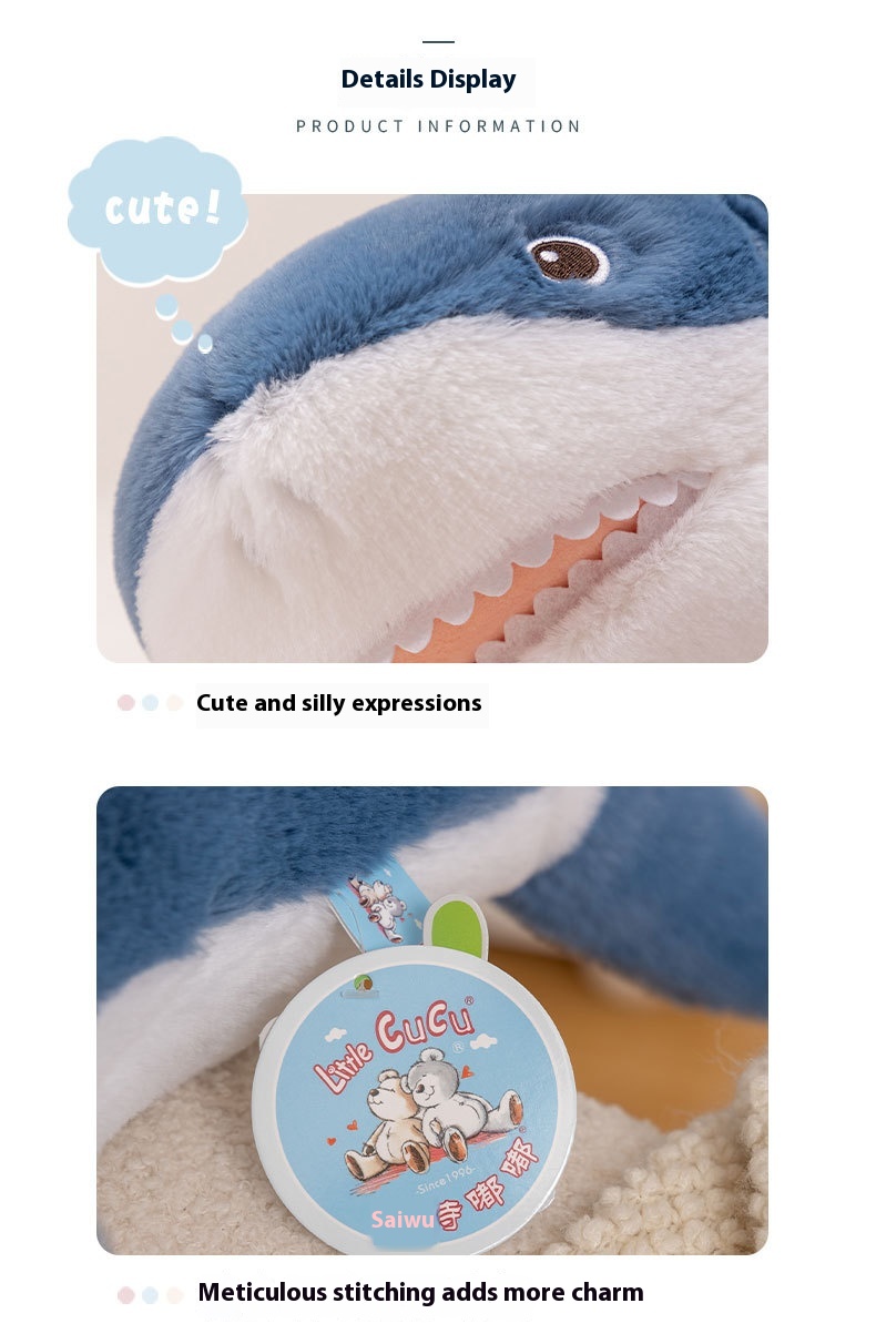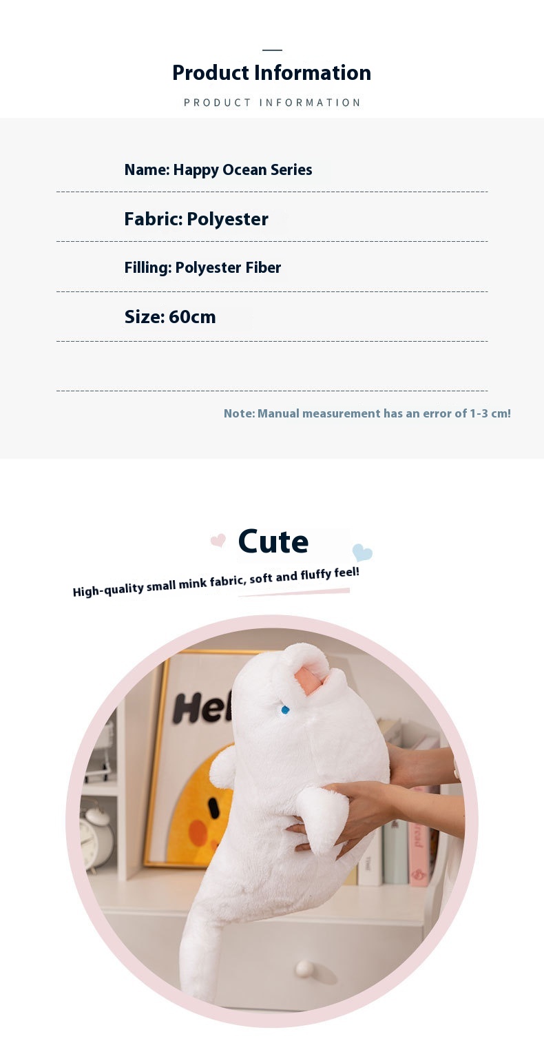 Product information:Color: white whale-White, dolphin-blue, shark-blue, killer whale-Height: 60cm [Happy Ocean series]]Fabric: Polyester fiberFilling: Polyester fiber
