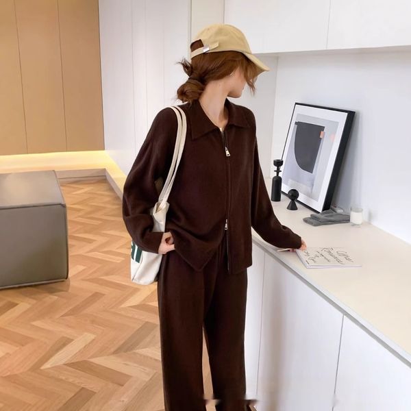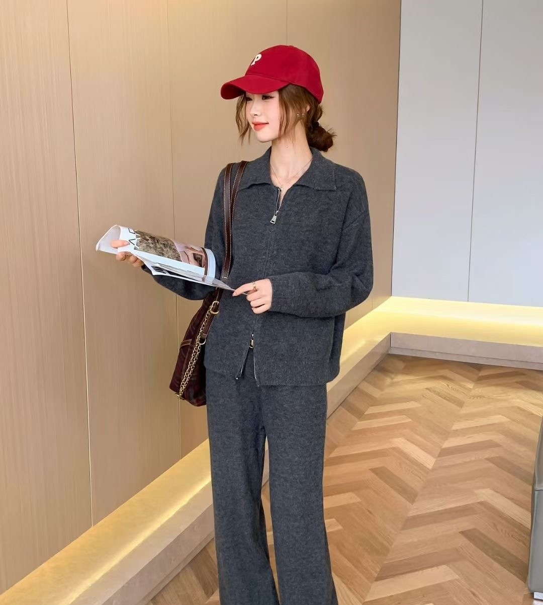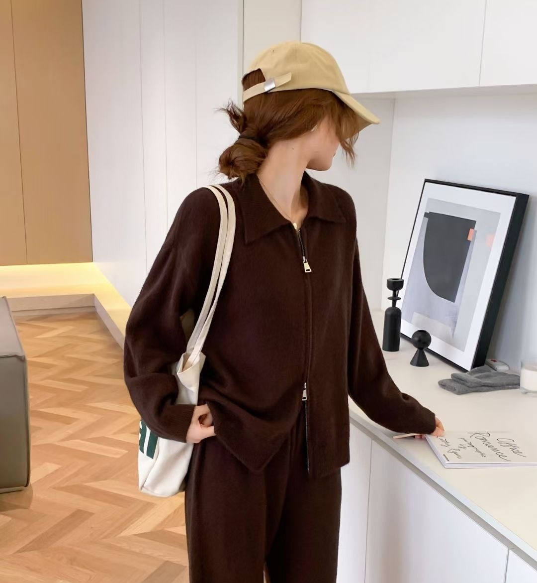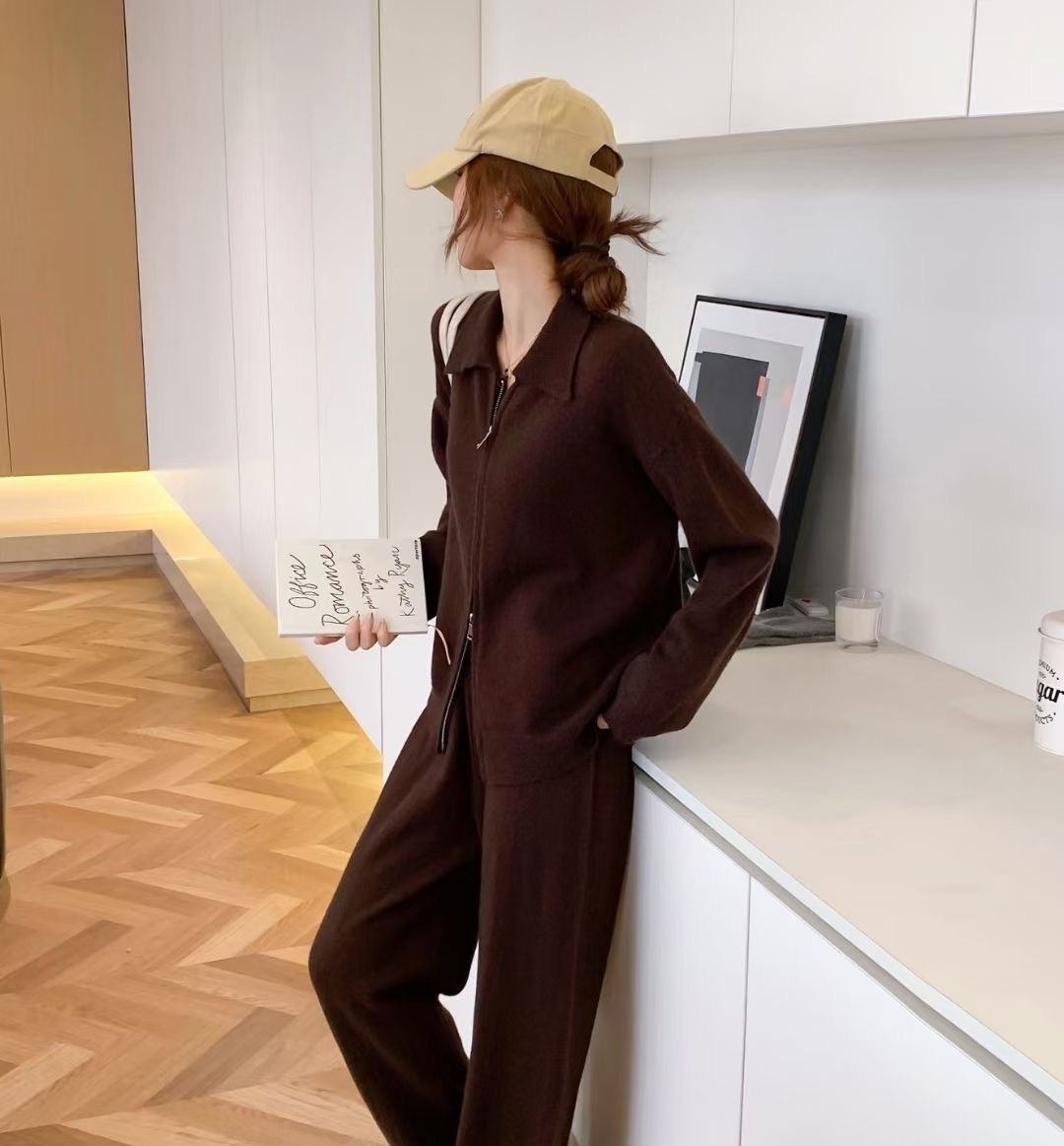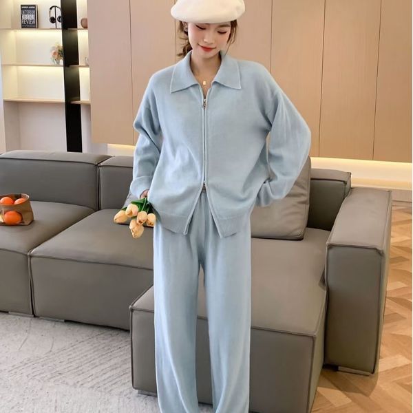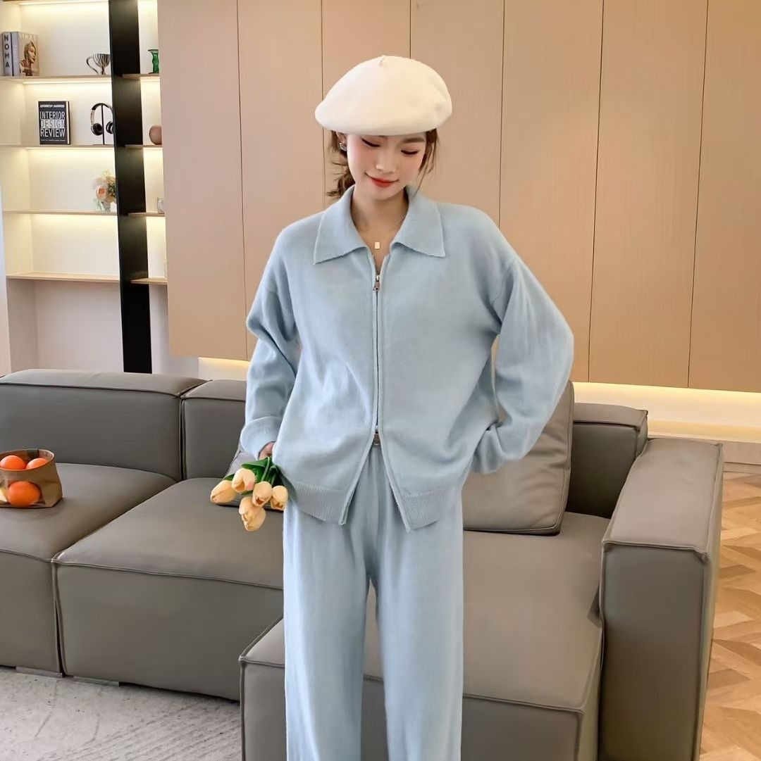 Product information: Pattern: solid color Fabric name: Cashmere Color: milky white, dark gray, sky blue, dark brown Sleeve type: conventional sleeve Pants length: trousers Main fabric composition: acrylic fiber Size: average size Applicable Gender: Female Style type: Japanese and Korean casual Sleeve length: long sleeve Popular elements: solid color