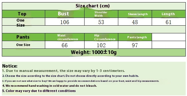 Packing list: Suit x 1 (Top+Pants) Product Image: