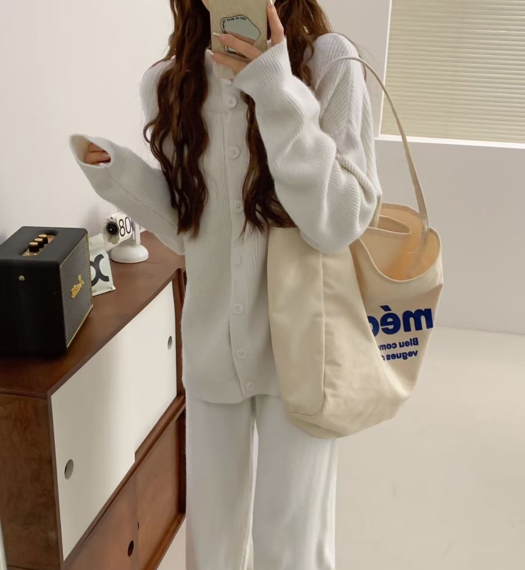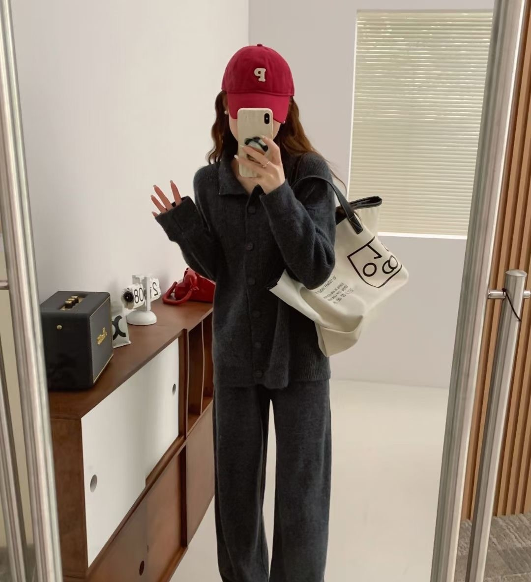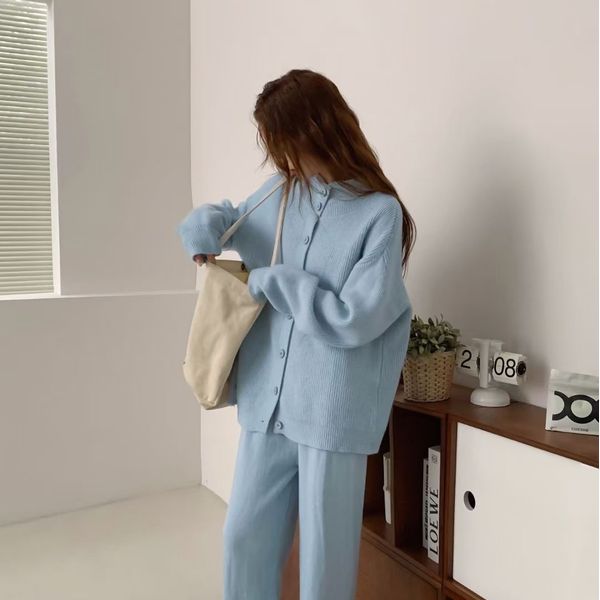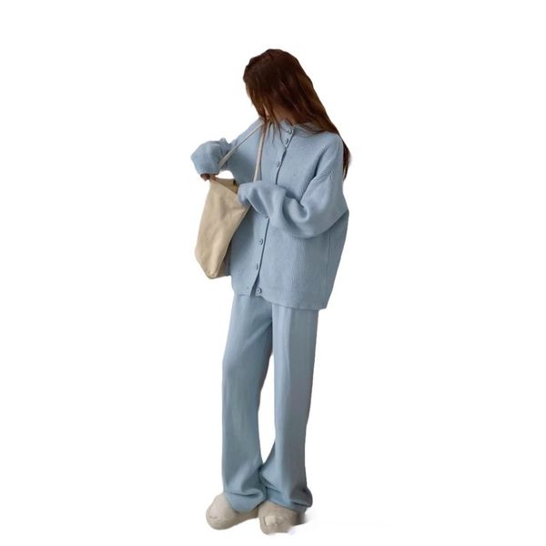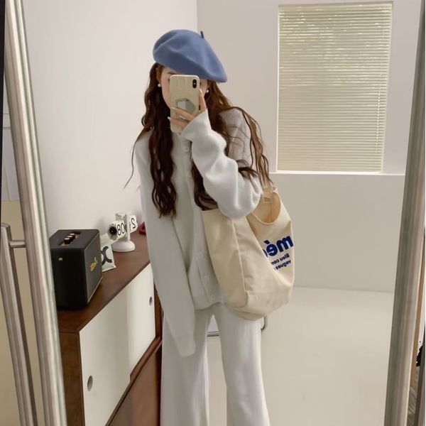 Product information: Pattern: solid color Color: milky white, sky blue, purple, dark gray Pants length: trousers Size: average size Style type: Japanese and Korean casual Popular elements: solid color Fabric name: Cashmere Sleeve type: regular sleeve Main fabric composition: acrylic fiber Applicable Gender: Female Sleeve length: long sleeve Style: casual style Craft: collage/stitching