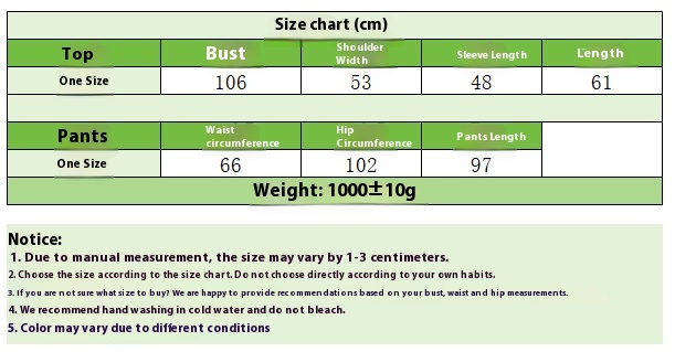 Packing list: Suit x 1 (Top+Pants) Product Image: