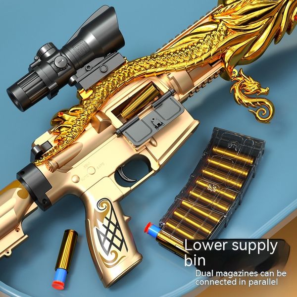 Product information:Toy material: Plastic Color: [LC64D] m416 Silver Dragon,[LC64D] m416 Golden Dragon Applicable people: Unlimited, boys Features: manual jump shell M416