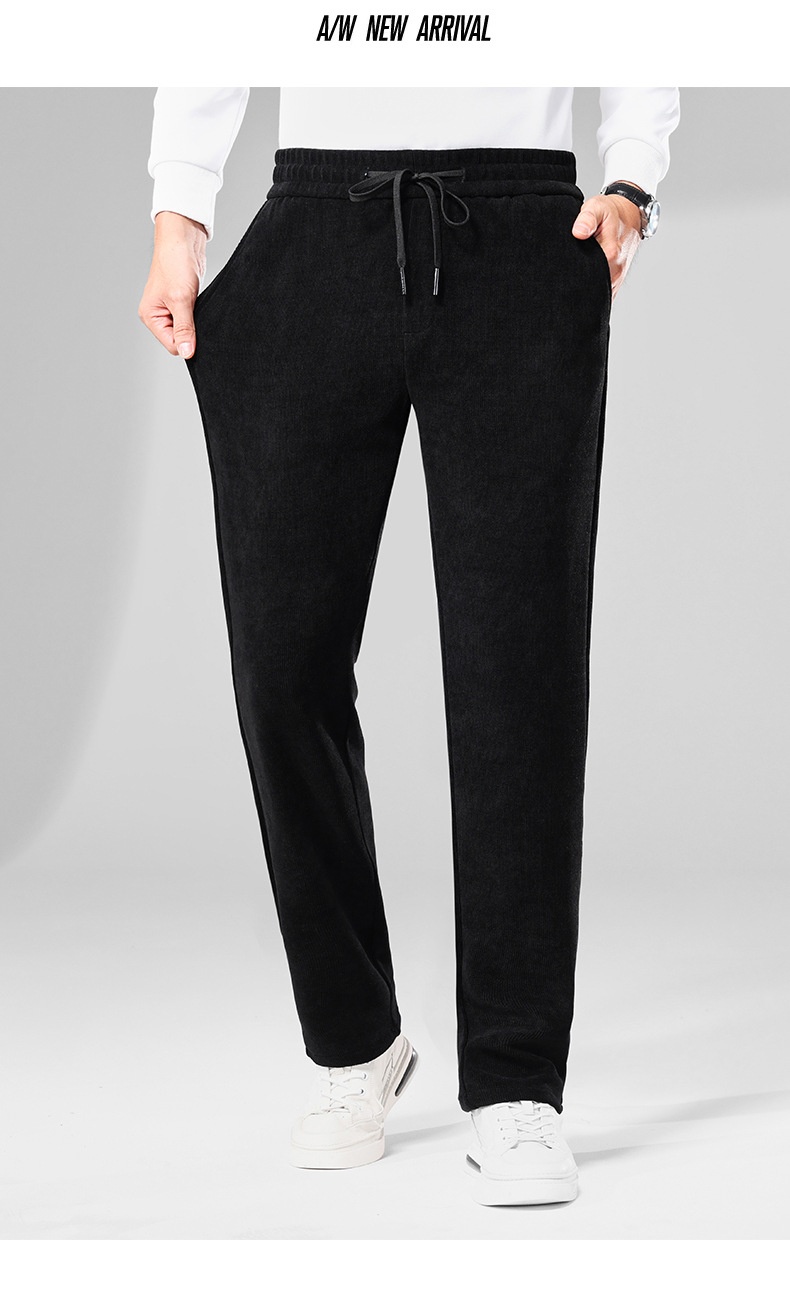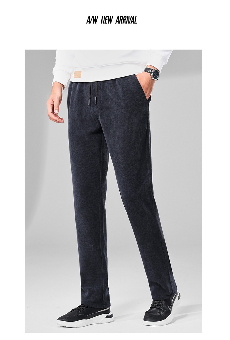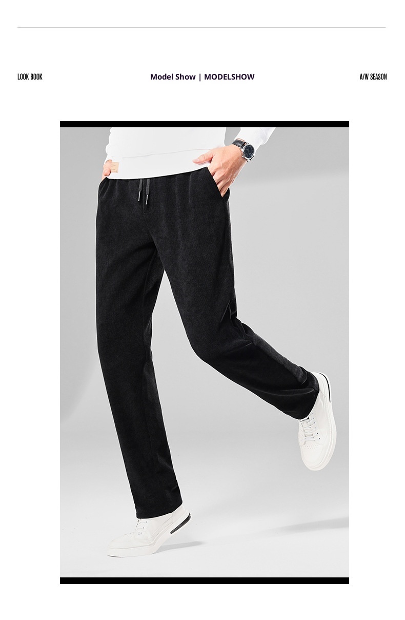 Product information: Color: 921 black without velvet, 921 dark gray without velvet, 921 khaki without velvet, 921 black with velvet, 921 dark gray brushed, 921 khaki with velvet lining Elasticity: Micro elasticity Pants length: trousers Waist Type: Mid waist Size: M,L,XL,XXL,XXXL,4XL Style: long straight-leg pants Fabric: corduroy Main fabric composition: Polyester Fiber (polyester) Applicable Gender: Male Pants type: Straight type