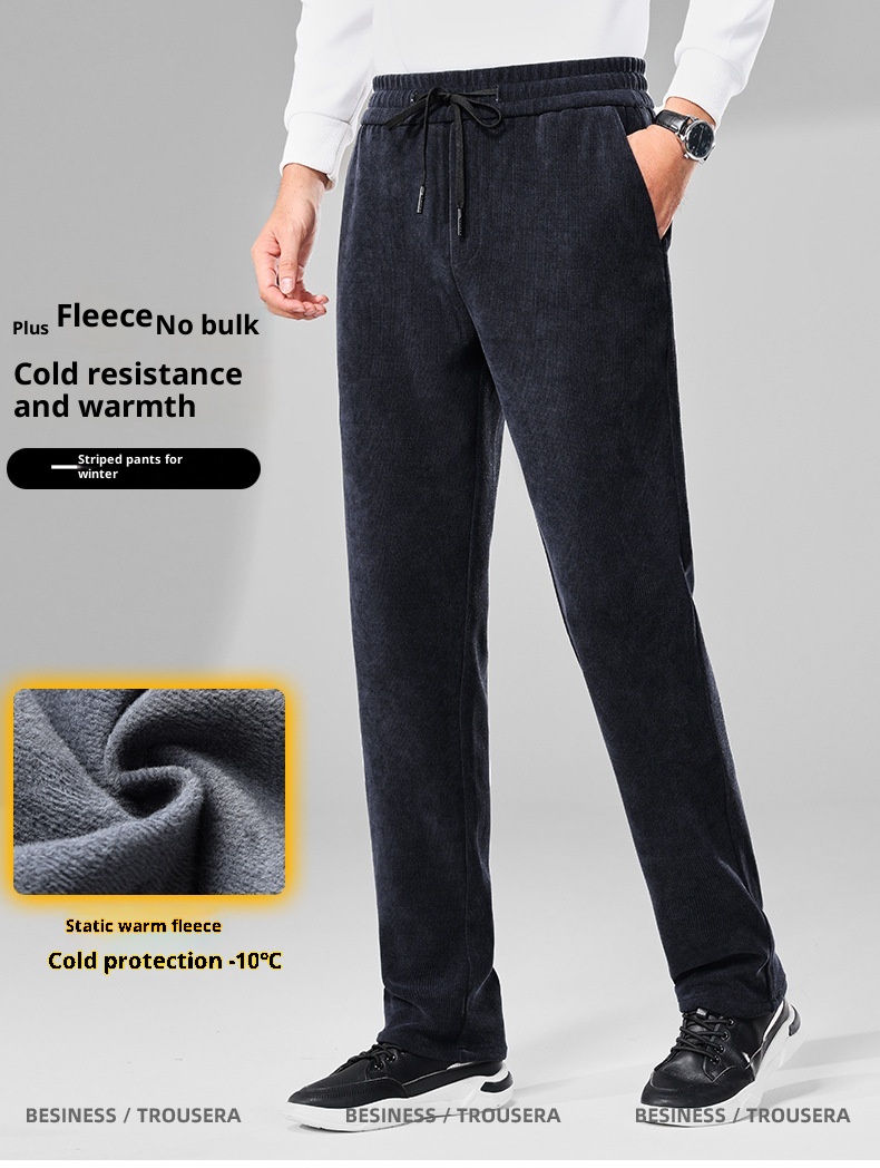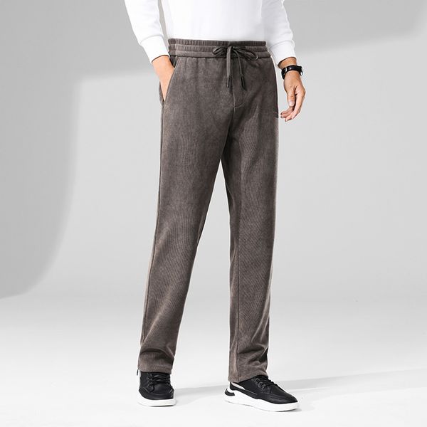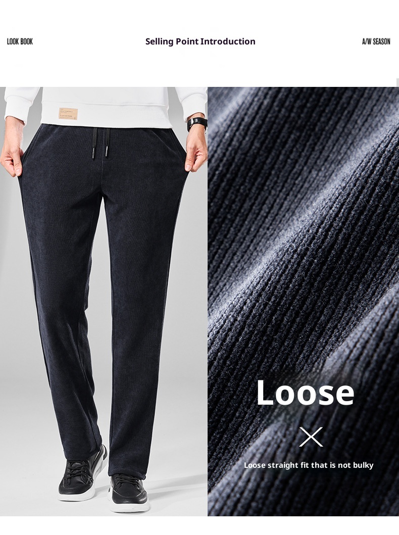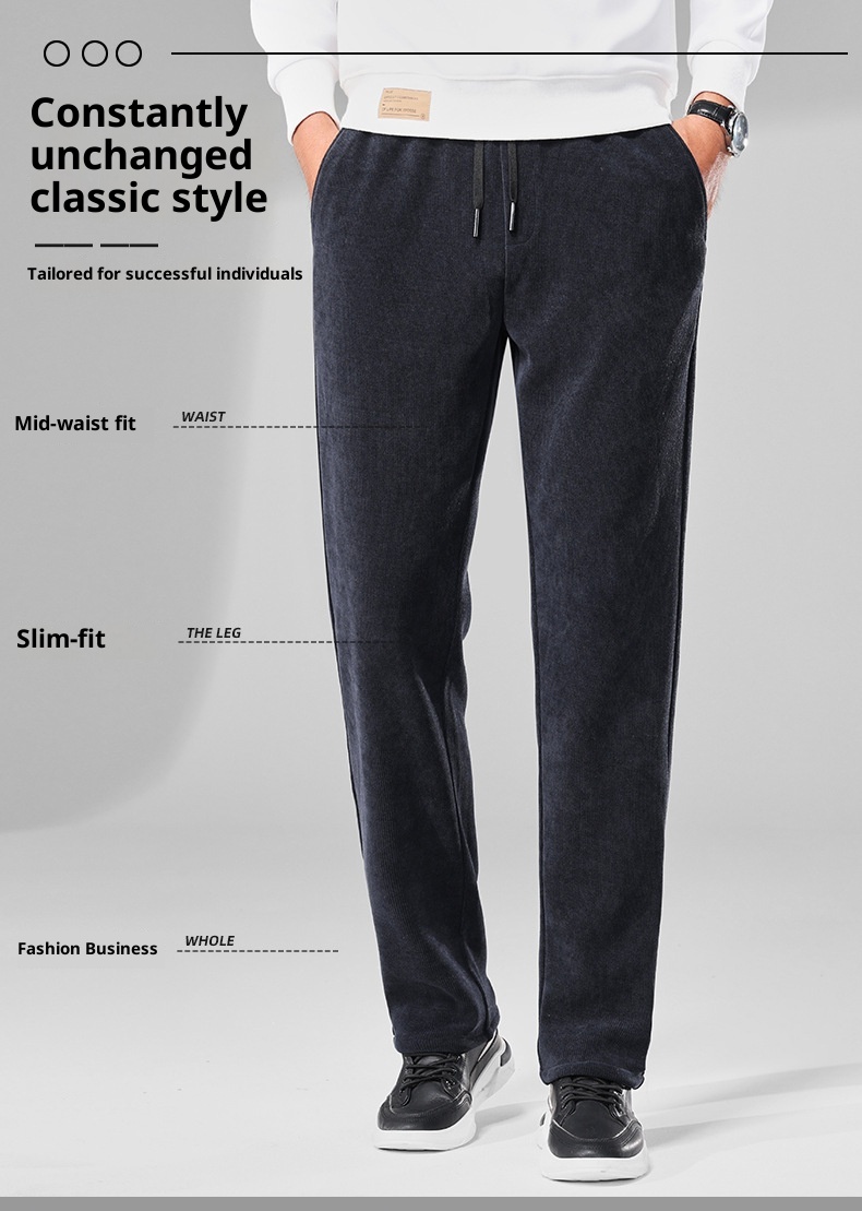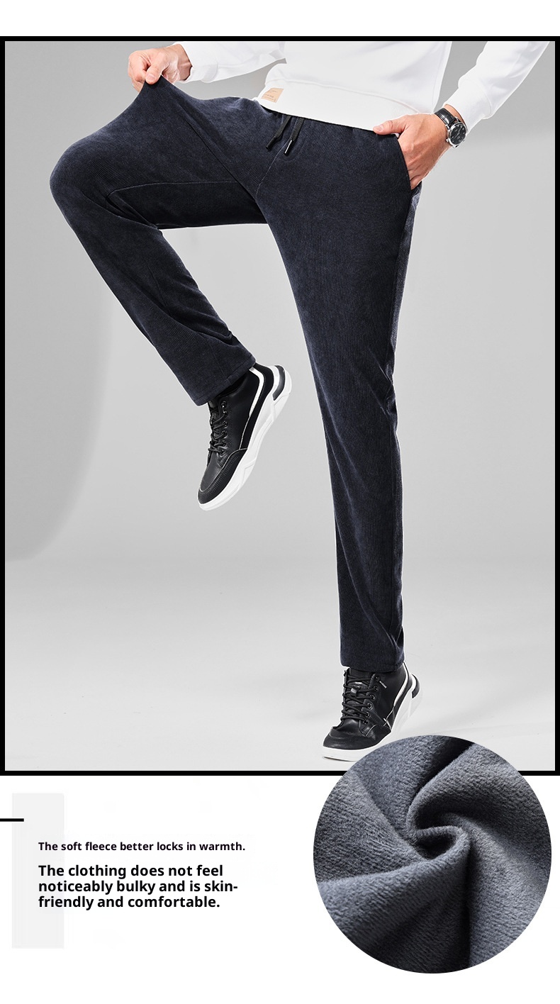 Product information: Color: 921 black without velvet, 921 dark gray without velvet, 921 khaki without velvet, 921 black with velvet, 921 dark gray brushed, 921 khaki with velvet lining Elasticity: Micro elasticity Pants length: trousers Waist Type: Mid waist Size: M,L,XL,XXL,XXXL,4XL Style: long straight-leg pants Fabric: corduroy Main fabric composition: Polyester Fiber (polyester) Applicable Gender: Male Pants type: Straight type