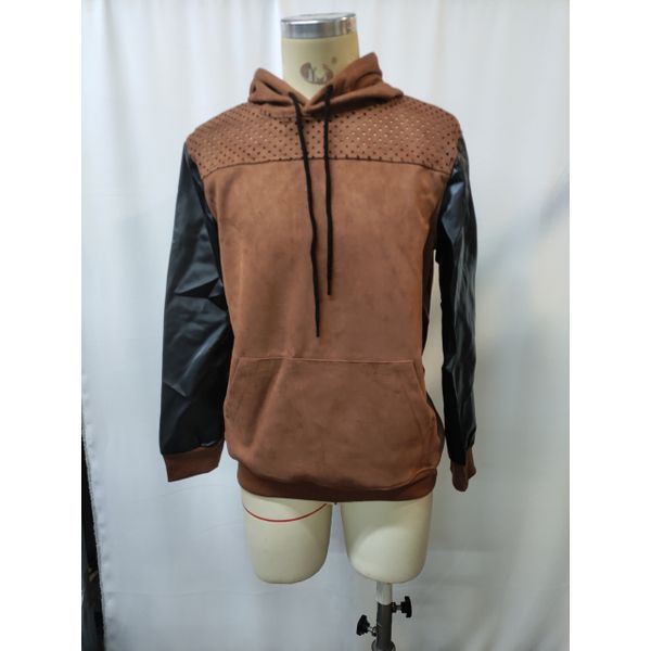 Product information: Color: Brown Size: S,M,L,XL,XXL,XXXL Style: pullover Thickness: thin Fabric name: Suede Main fabric composition: Polyester Fiber Applicable Gender: Male Hooded or not: Hooded Sleeve length: long sleeve