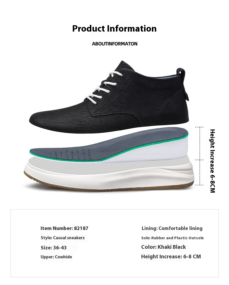 Product information:Pattern: solid color Lining material: imitation leather Color: khaki, Black Heel height: 6cm,8cm Size: 36, 37, 38, 39, 40, 41, 42, 43 Style: casual shoes Toe holder shape: round head Shoe Upper material: Cowhide Function: breathable Style: casual style