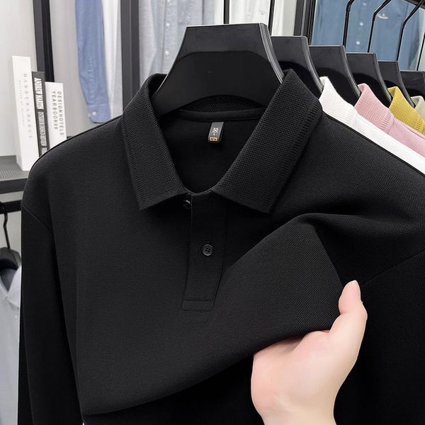 Mercerized Cotton Long-sleeved Polo Shirt Men's Spring And Autumn Casual Clothing For Middle-aged Dad Breathable Bottoming