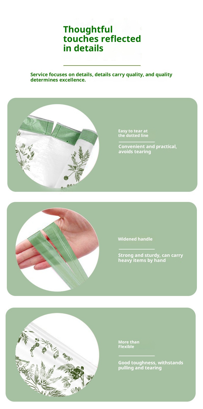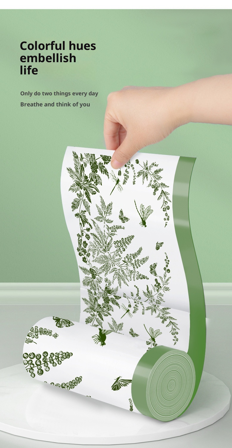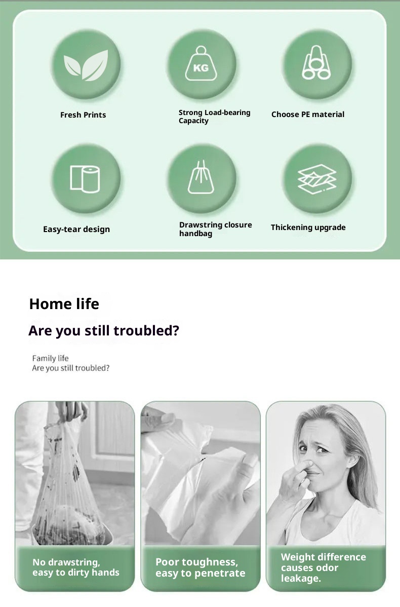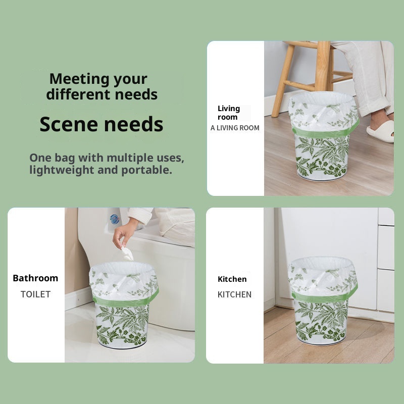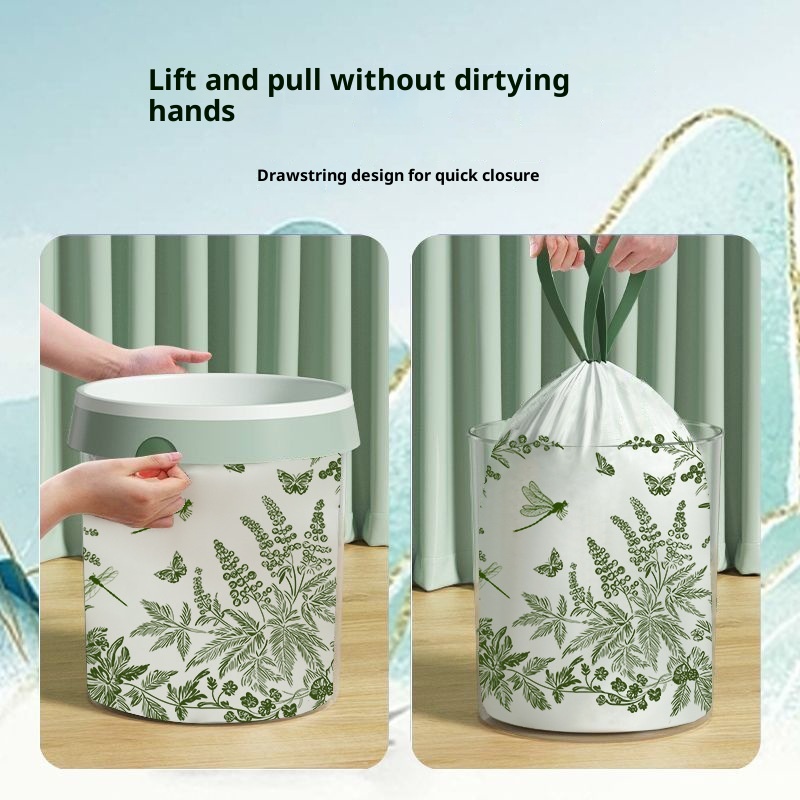 Product information:Thickness: RegularColor: Mugwort Printed Drawstring Trash Bag Application: HouseholdSpecification: 100 pcs/roll, 50 pcs/roll, 30 pcs/roll, 10 pcs/roll, 12 pcs/rollStyle: DrawstringMaterial: PE